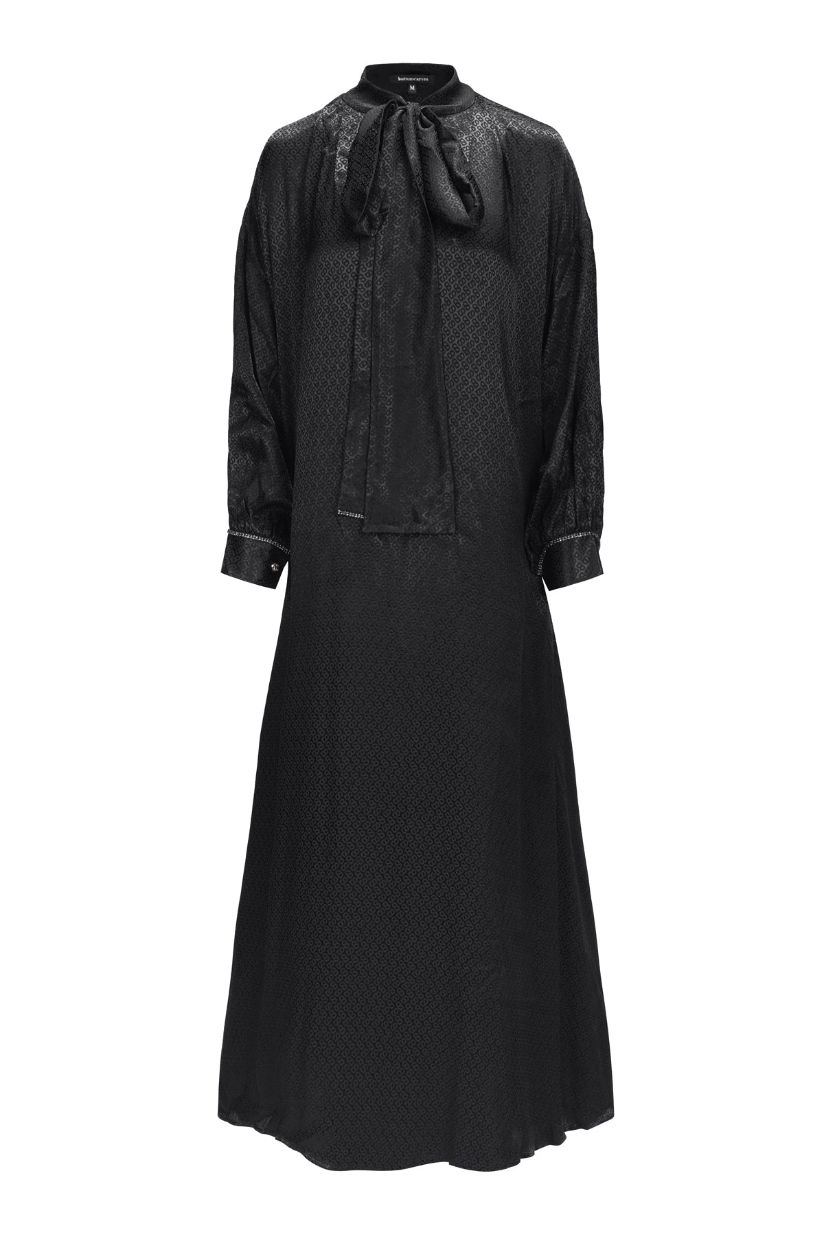 Featuring the signature monogram pattern for a touch of sophistication, this long dress is beautifully complemented by a self-tie bow at the collar, adding a feminine and refined detail.