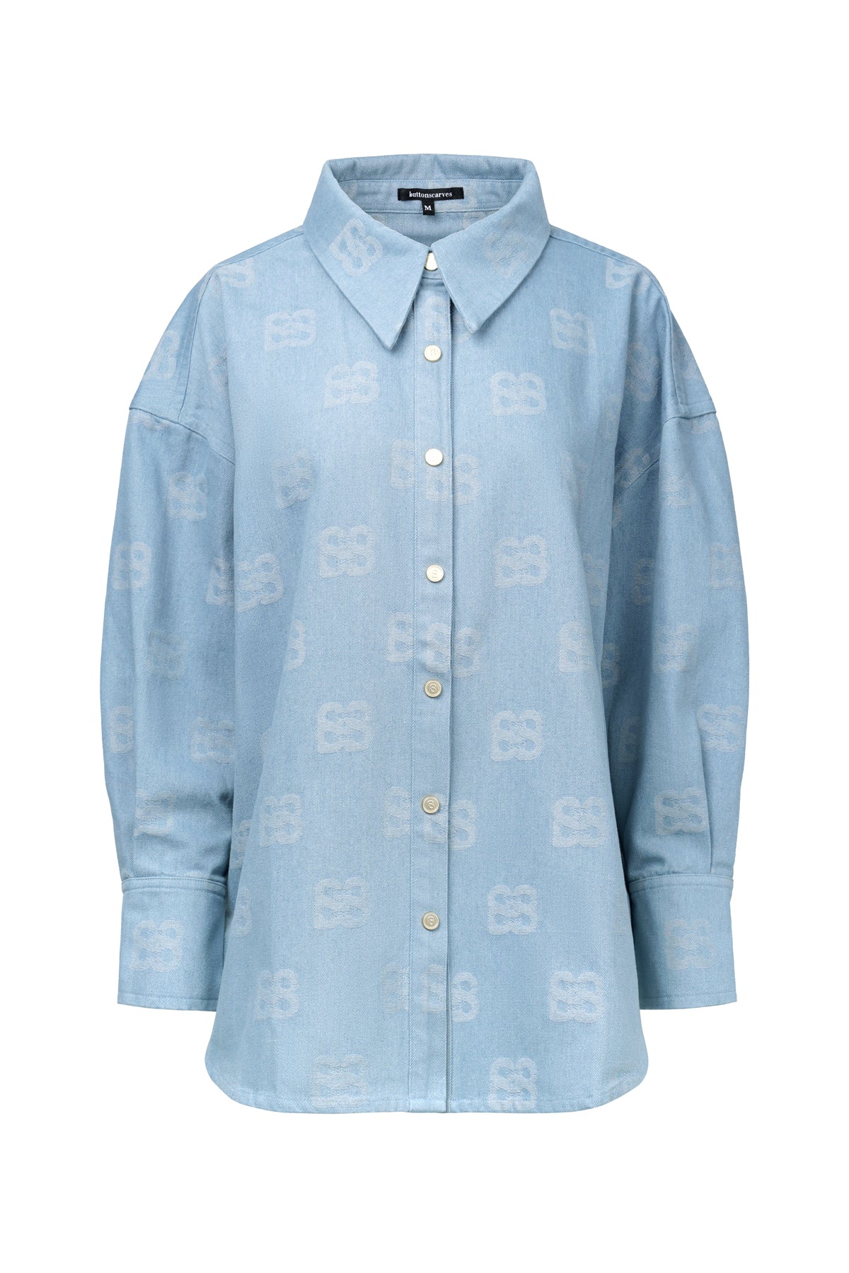 Crafted from exquisite washed denim, this shirt showcases the signature Deux monogram pattern, front opening buttons, and buttoned sleeves, this shirt is designed for versatility—perfect for both casual and semi-formal occasions.