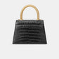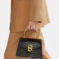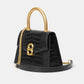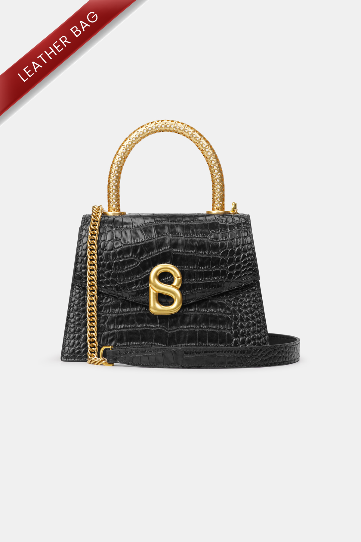 Crafted from luxurious croc-embossed leather, this structured silhouette exudes sophistication. Its standout feature is its gracefully curved handle, adorned with the iconic B monogram. It also comes with a detachable chain strap featuring a leather pad for versatile carrying options.