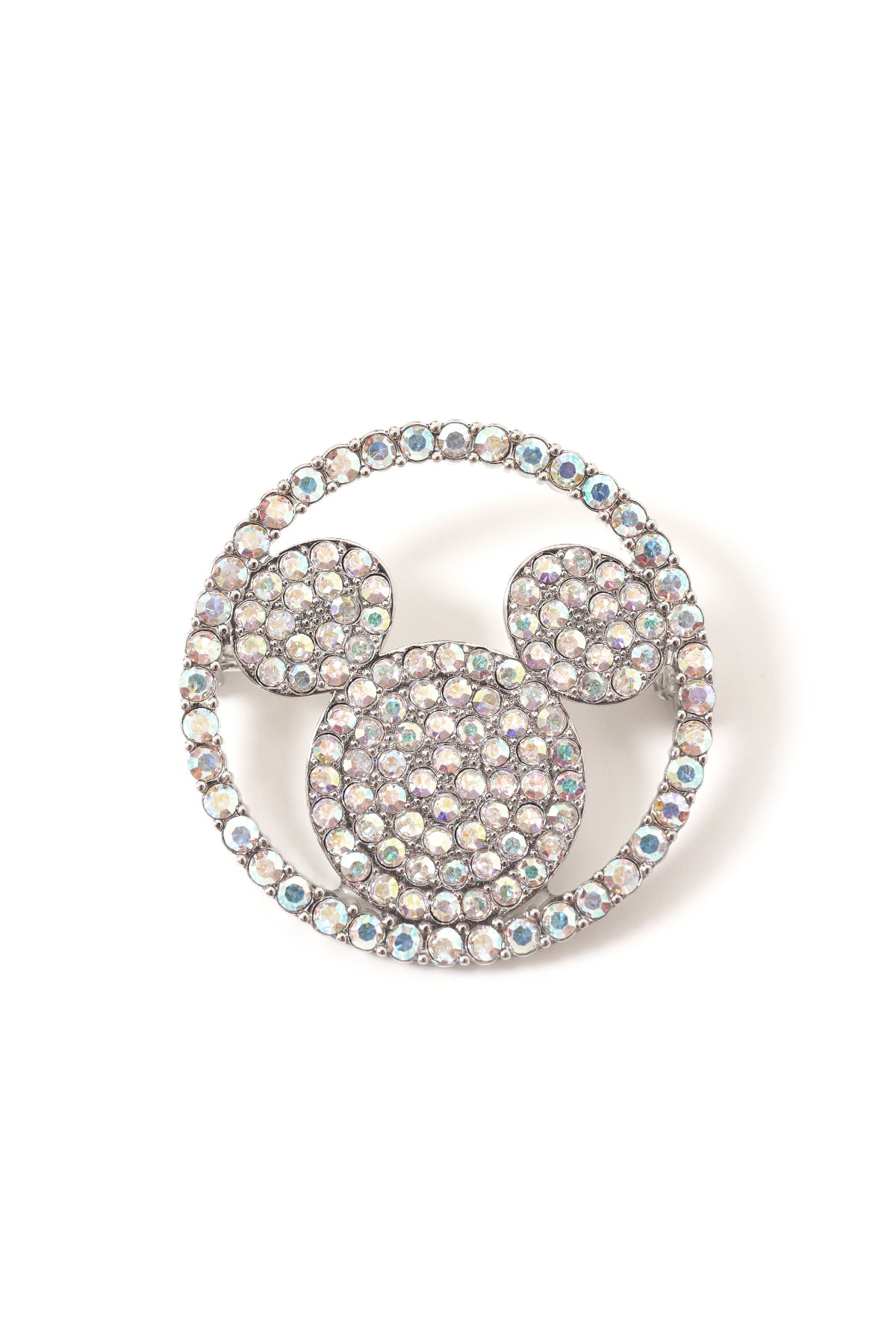 This special Disney x Buttonscarves Brooch has the iconic Minnie's silhouette shape adorned with a rounded frame. Features the sparkling crystals add a touch of luxury to any outfit.