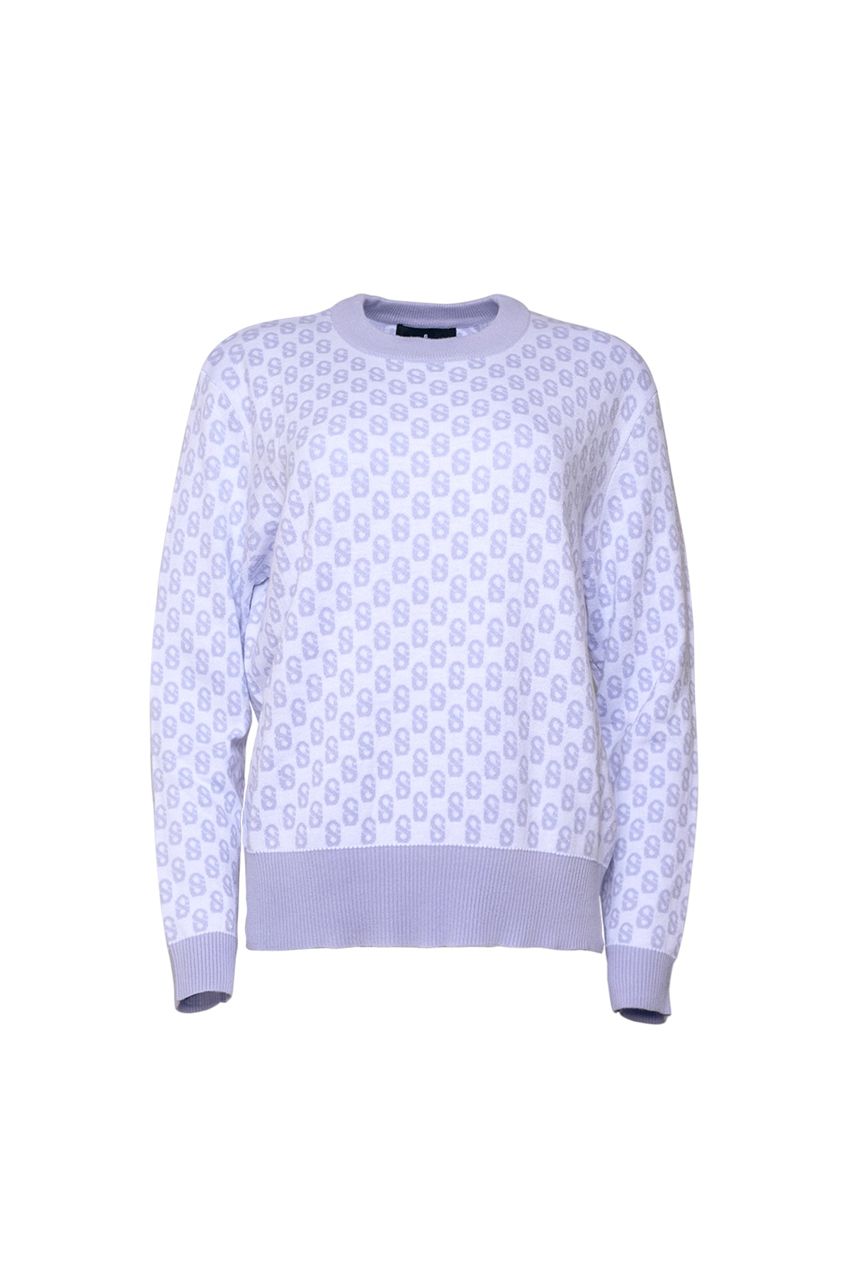 The long-sleeved knitted sweater is detailed with the signature monogram logo all-over print. The design has a classic silhouette completed by a ribbed crewneck, hem, and cuffs. The elegant style will bring contemporary refinement to any outfit.