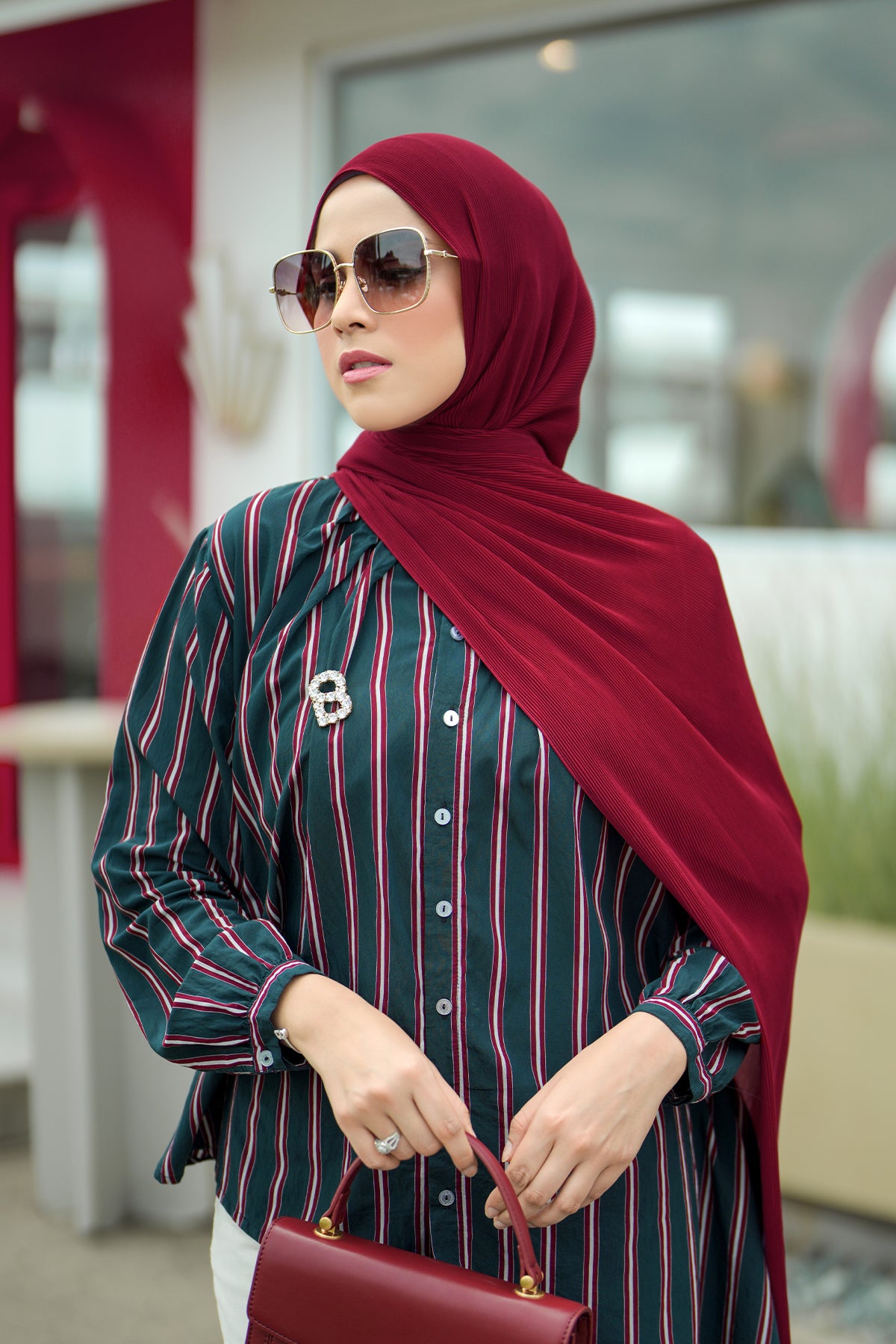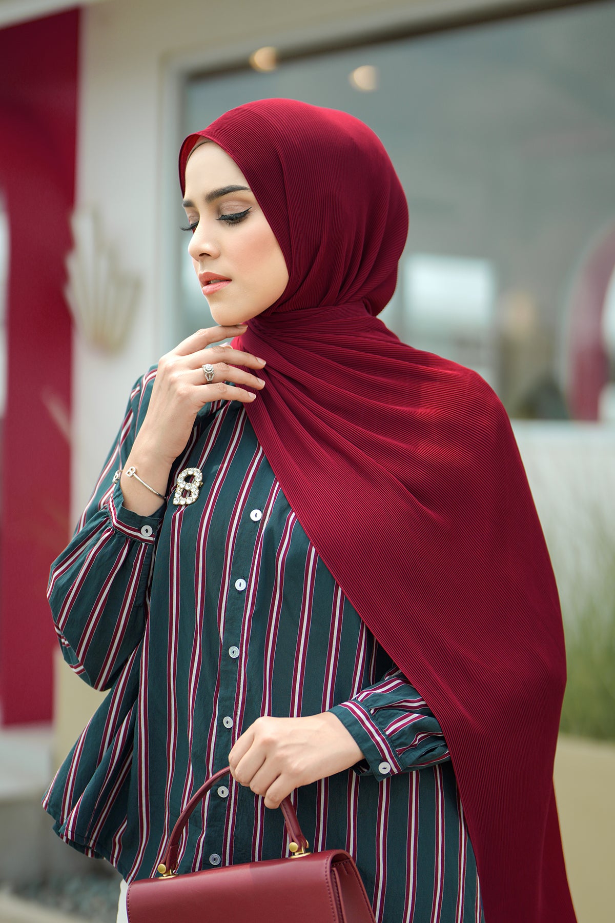 Created from the finest fabric, this pleated scarf drapes gracefully and frames every face shape flawlessly. It is reinforced with 3 trendy colors. A brilliant option to rock any occasion, from daily to special moment.