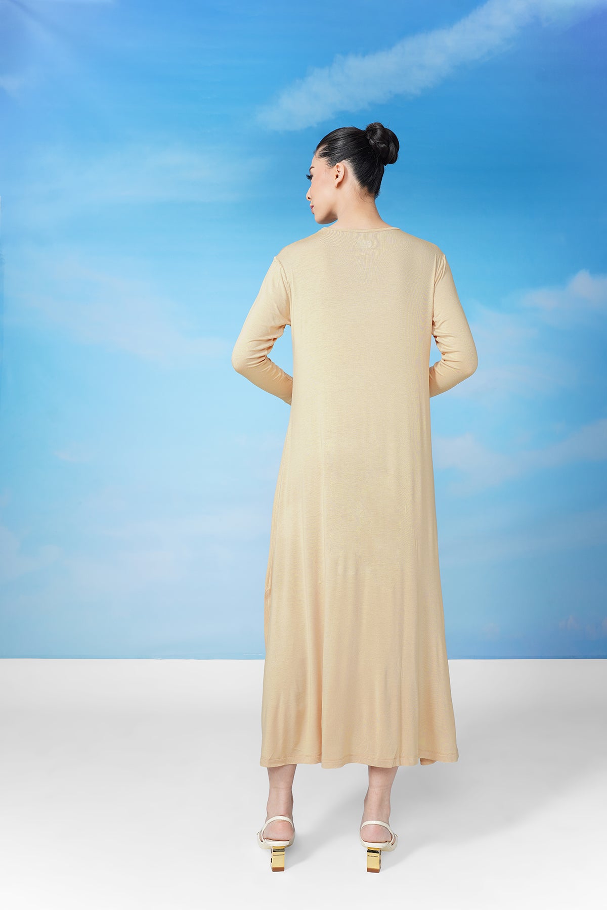 This wardrobe essentials inner dress is crafted from a blend of viscose and spandex. Its high-quality, lightweight, and stretchable material ensures a snug yet comfortable fit, molding to your body like a second skin.