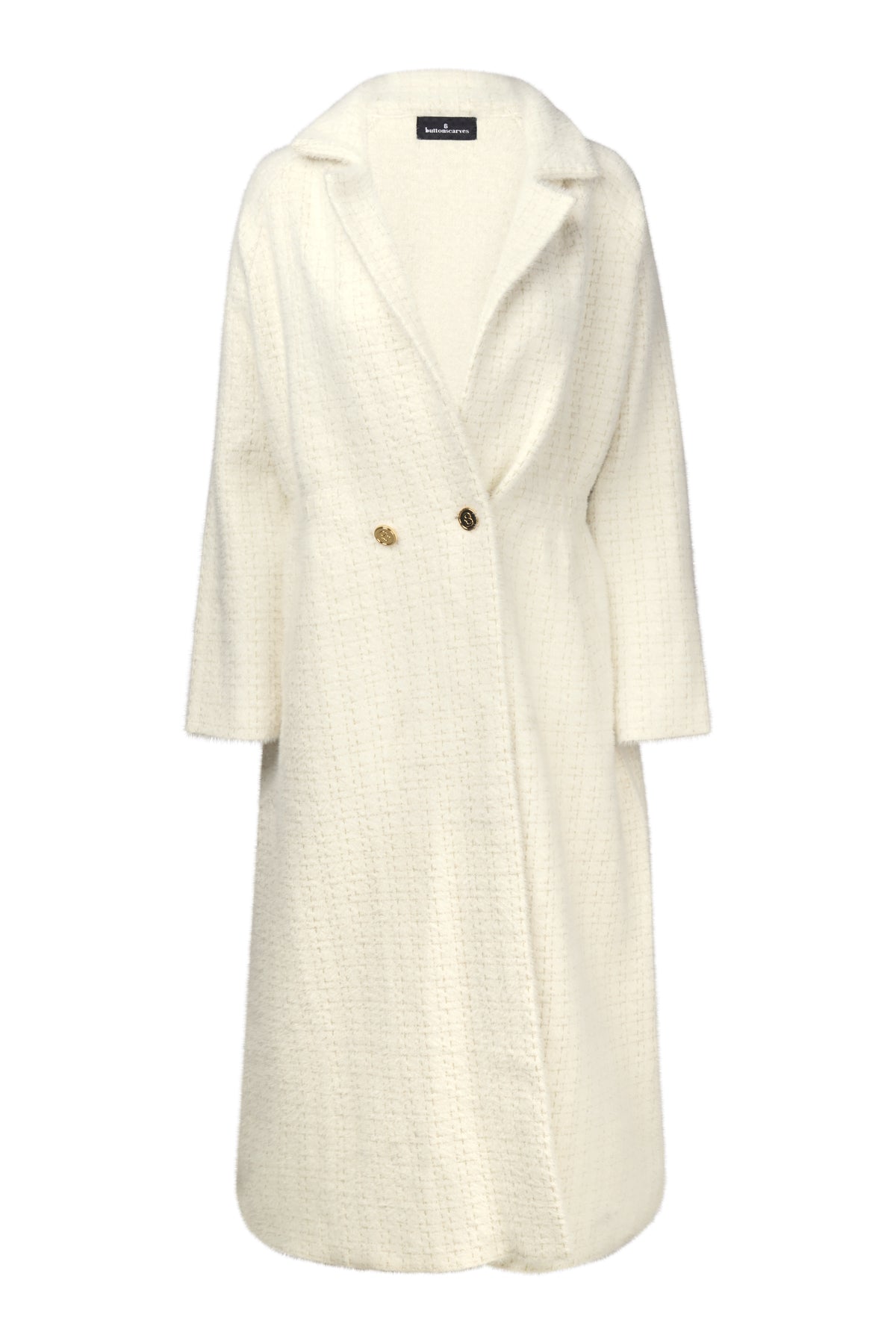 Crafted from soft and comfortable fabric, ideal for staying warm while looking effortlessly chic. Its design features delicate line detailing that adds an elegant texture. This coat is styled with a classic double-button front for an added touch of sophistication.