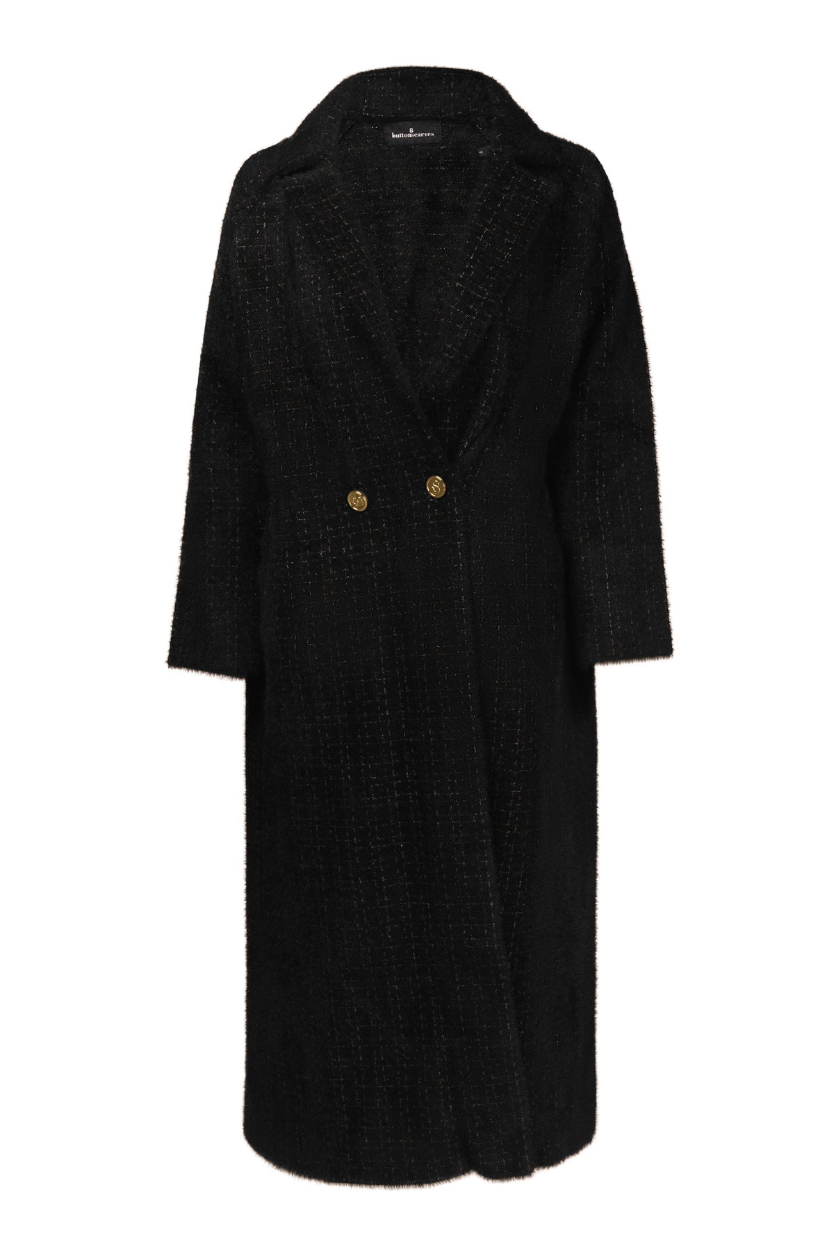 Crafted from soft and comfortable fabric, ideal for staying warm while looking effortlessly chic. Its design features delicate line detailing that adds an elegant texture. This coat is styled with a classic double-button front for an added touch of sophistication.