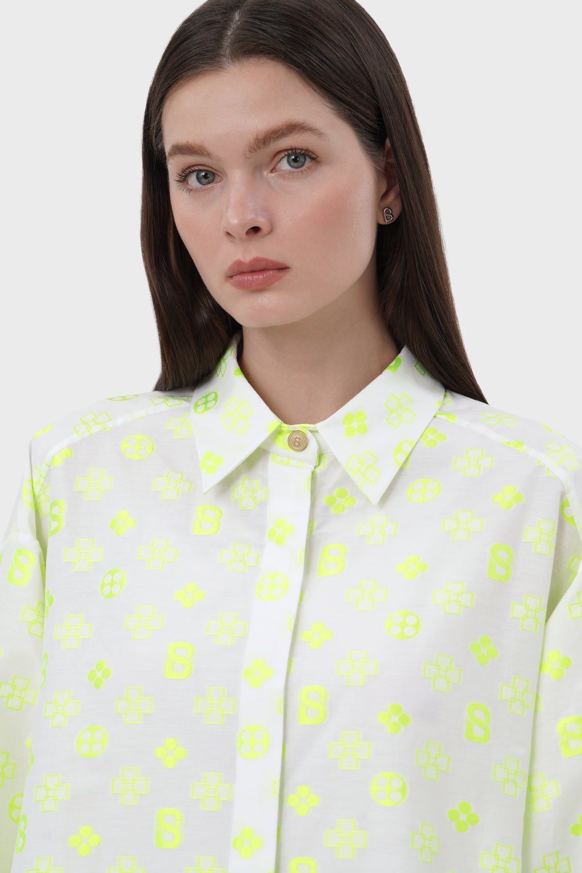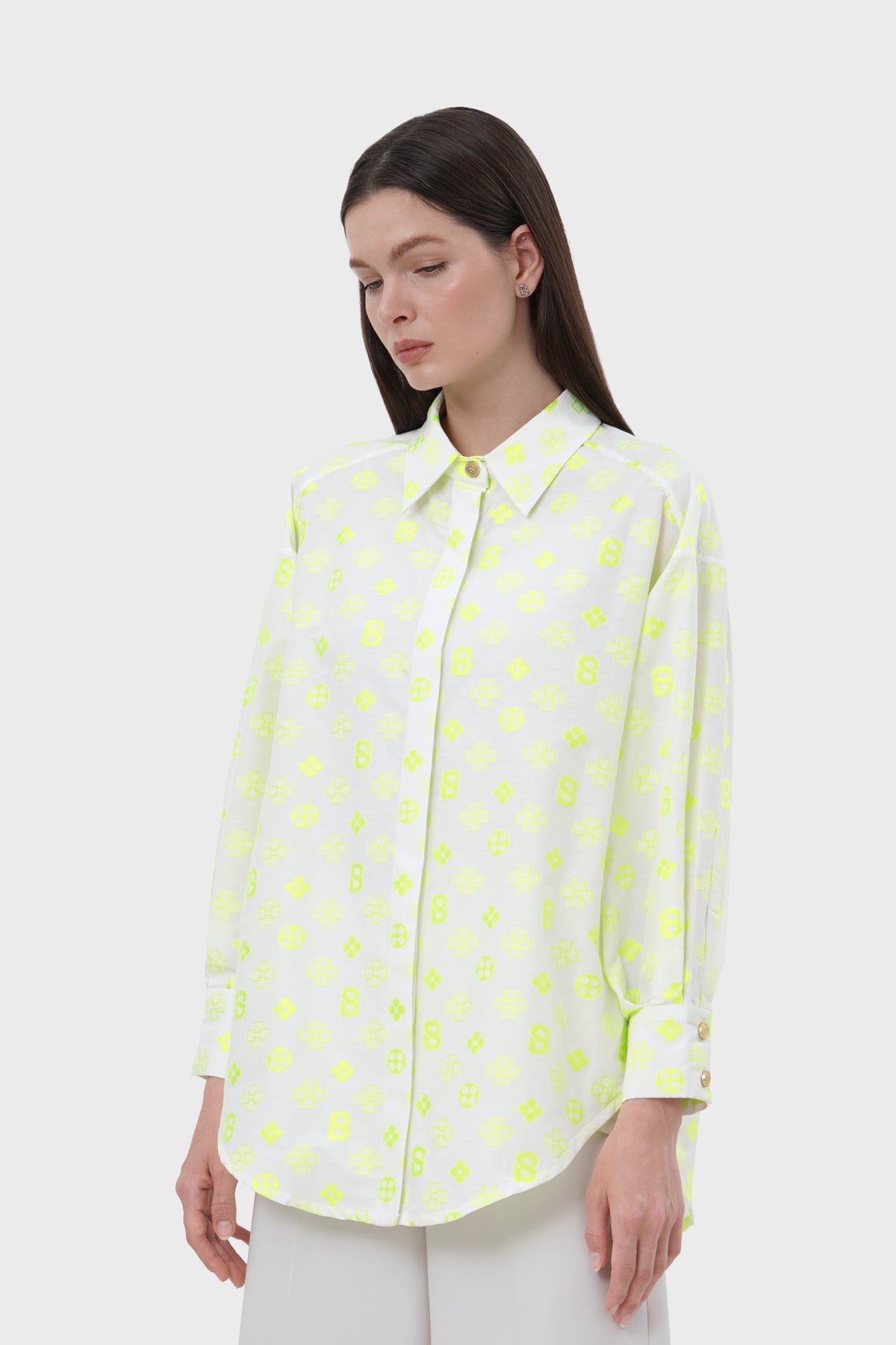 A fresh twist on the classic shirt, this shirt features bold neon monogram embroidery that instantly elevates your everyday look. Crafted from lightweight, wrinkle-resistant fabric, it combines comfort and breathability with a relaxed silhouette.