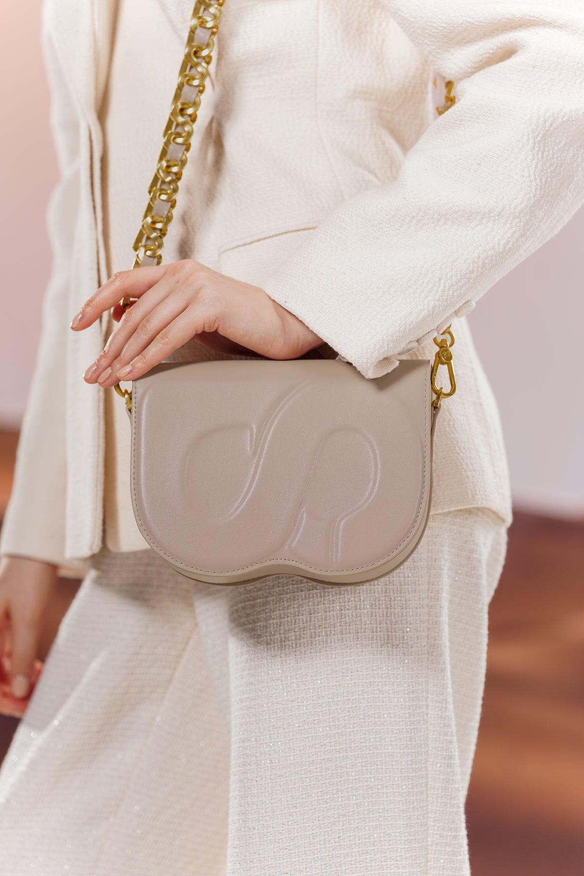 A masterpiece of smooth cow leather crafted to perfection. Featuring the iconic embossed B logo on the flap, gold-toned hardware, and a chain shoulder strap with a leather pad, this bag is both stylish and practical. With gusset compartments and handy pockets, it keeps your essentials neatly organized. Wear it as a shoulder bag or crossbody for versatile elegance.