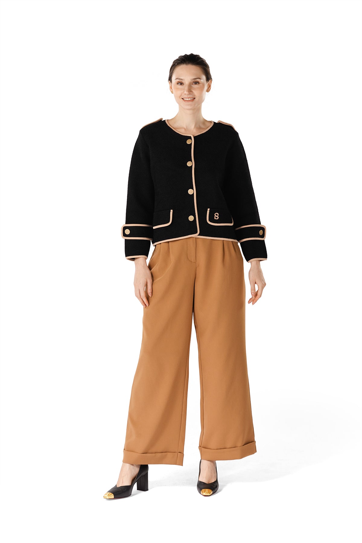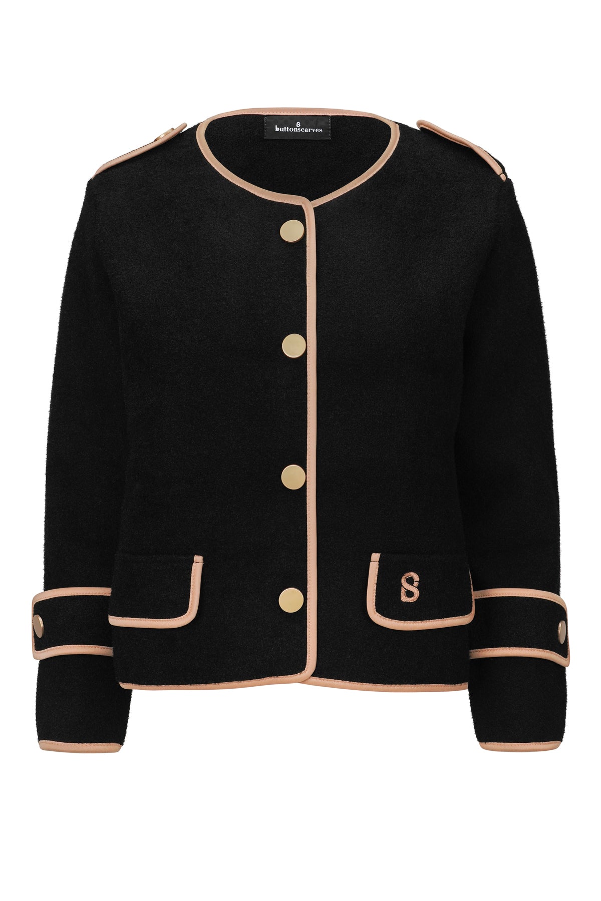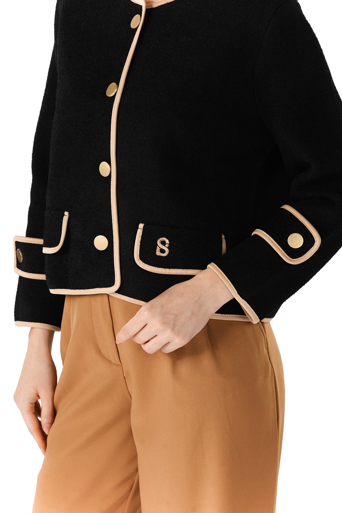 Featuring a chic cropped silhouette, detailed with signature B buttons on the shoulders and sleeves, this coat offers a refined touch of sophistication. Its warm and soft fabric ensures comfort, while the sleek design makes it a versatile statement piece.