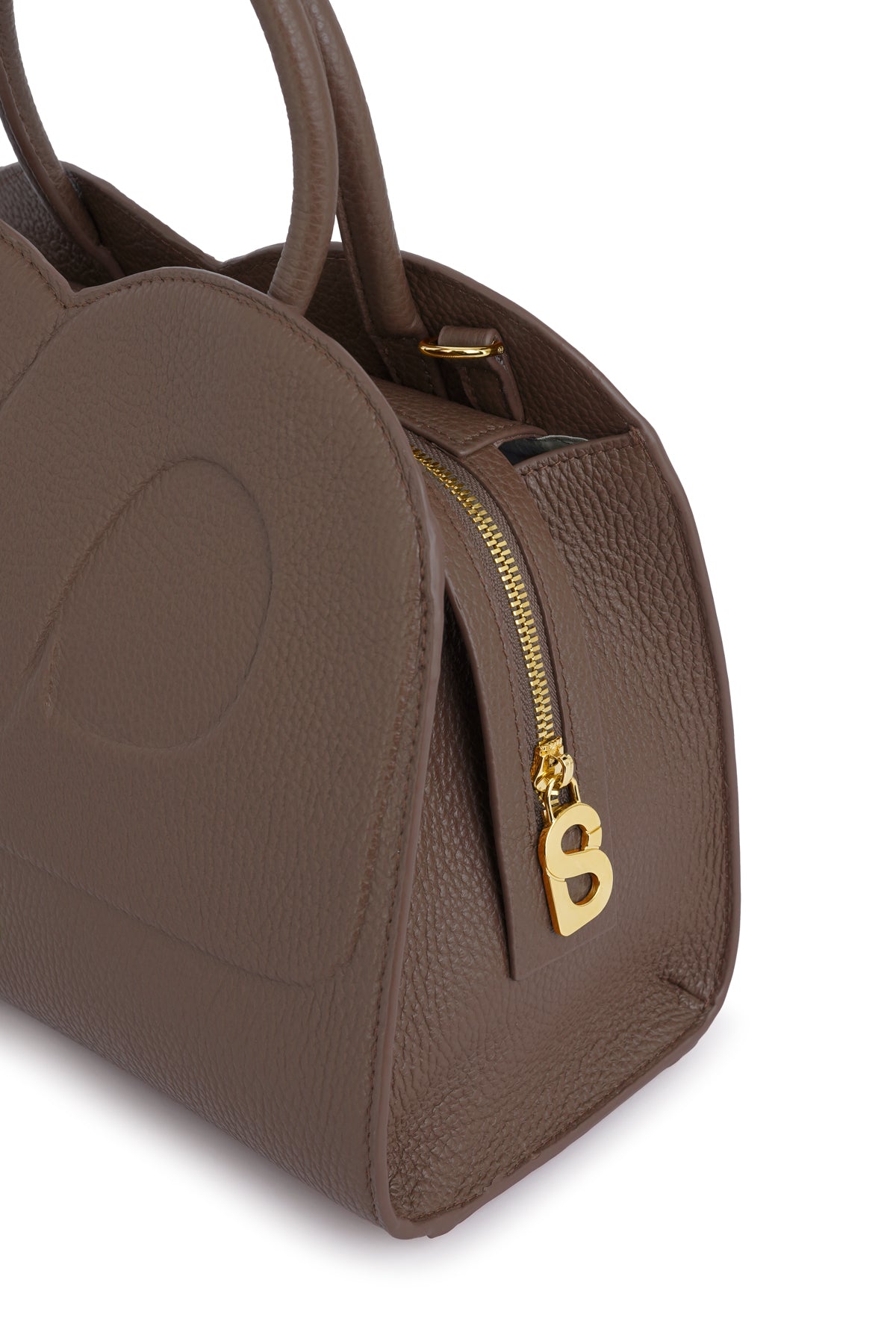 - Rounded leather handle