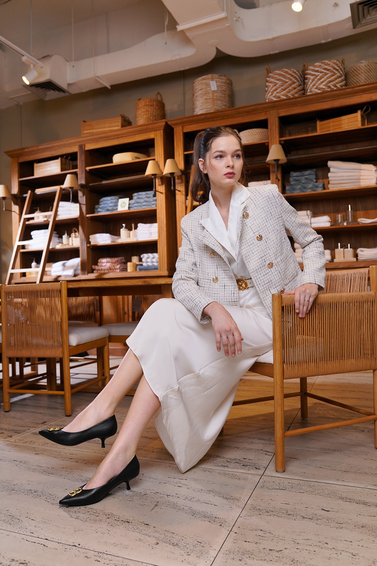 These heels feature a classic pointed toe and a convenient slip-on style, ensuring effortless wear. With comfortable 5cm kitten heels and gold-tone signature 'B' detail atop, these shoes are perfect for both formal occasions and everyday chic.