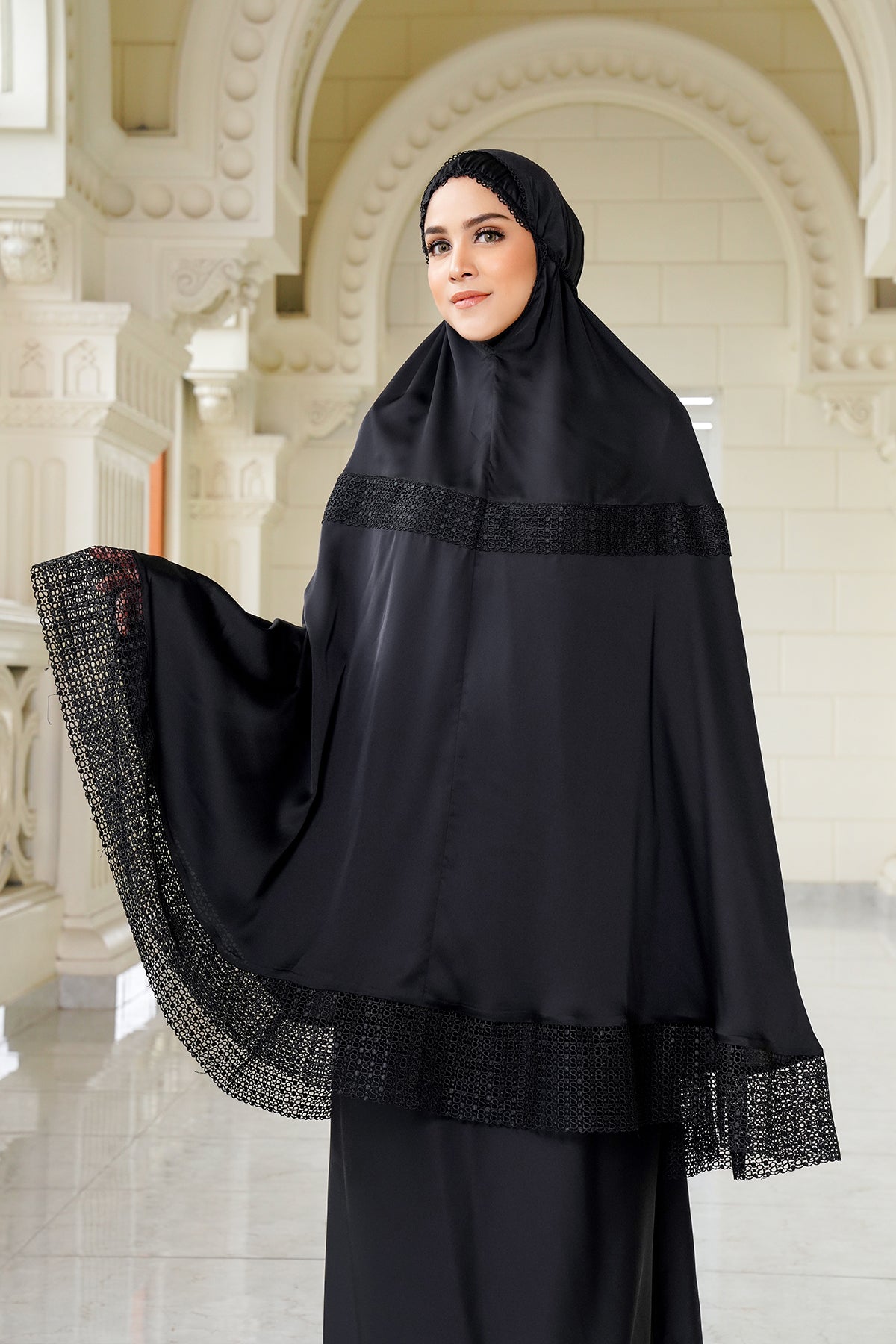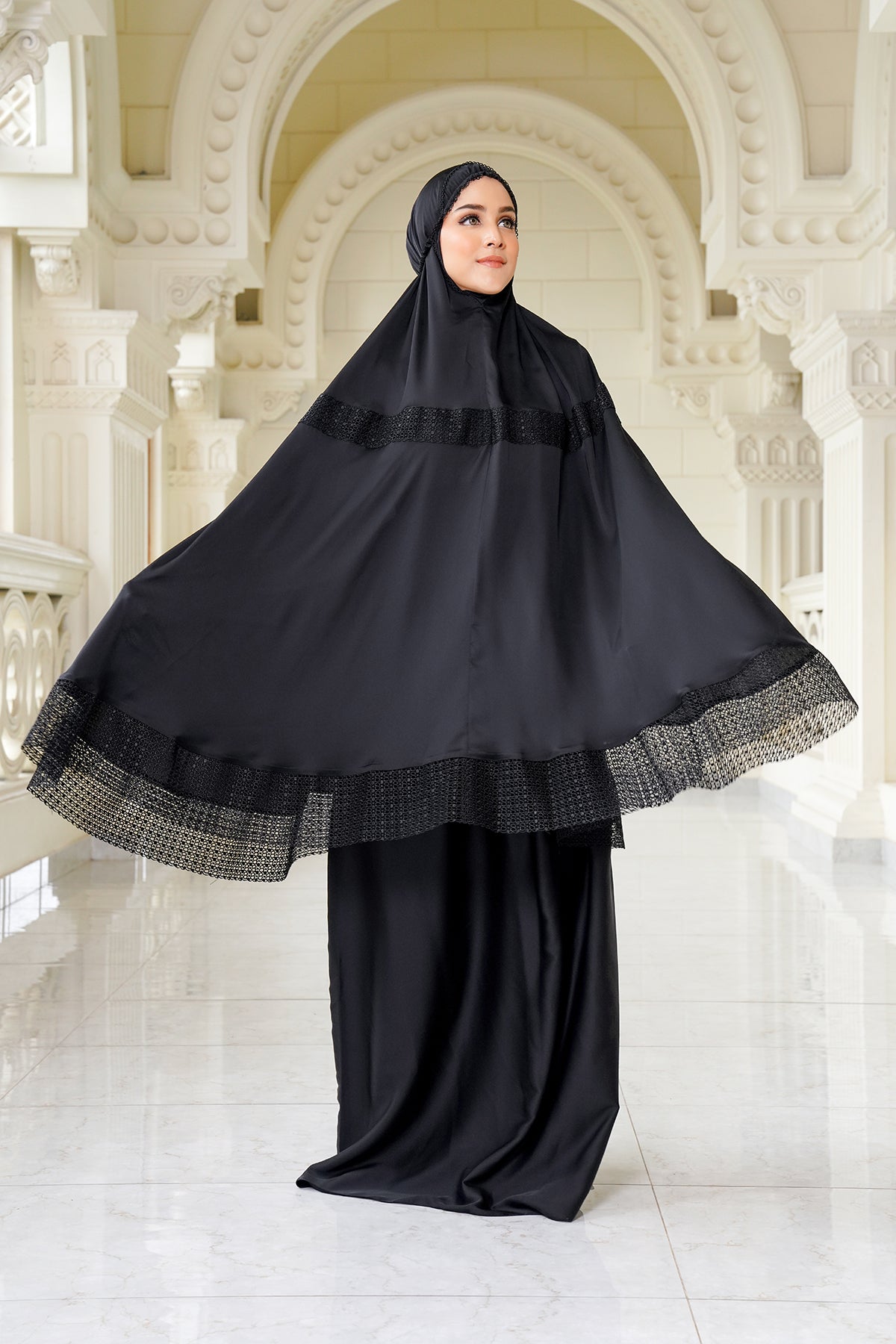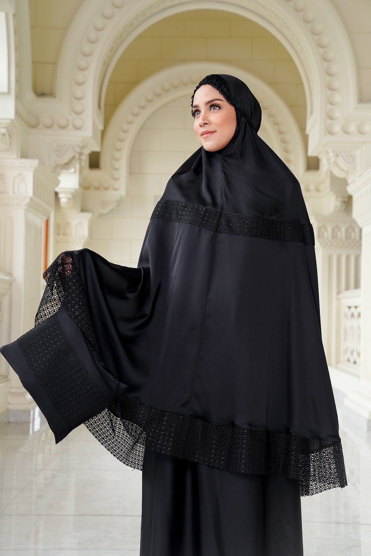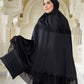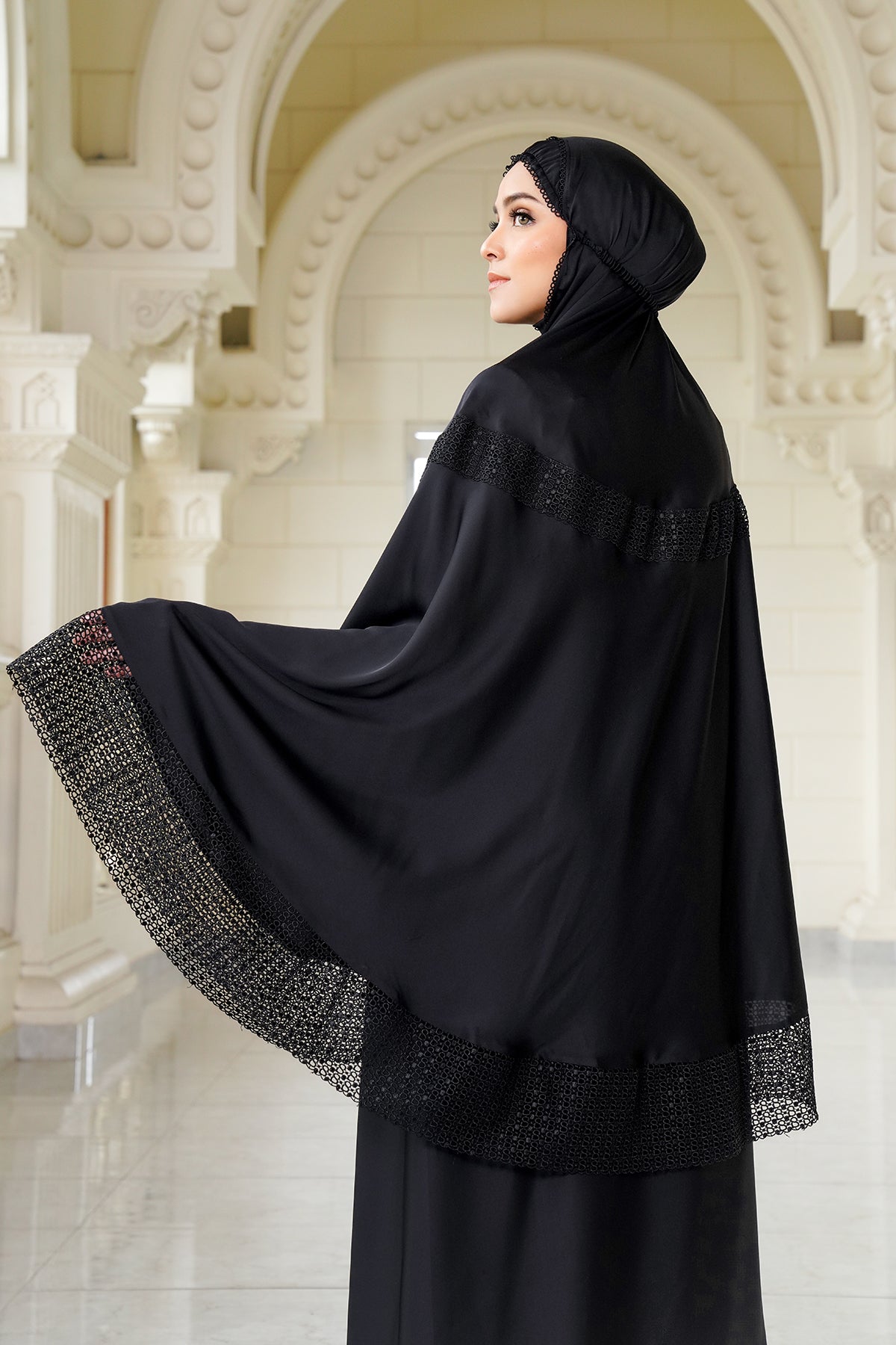 Adorned with beautiful lace trims, this prayer robe gives a delicate touch of beauty to your prayers. Crafted to be lightweight and cooling, it ensures comfort during prayers. It has an elasticized band at the back that caters to all face sizes, providing a perfect fit for everyone.