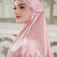 Crafted from exquisite tapis-embossed fabric and adorned with delicate lace detailing. An elevated take on this design is the Brianna hardware on the elasticated headpiece. It comes in a spacious, quilted Luna pouch, thoughtfully designed with interior pockets for added convenience.