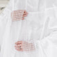 Crafted from exquisite tapis-embossed fabric and adorned with delicate lace detailing. An elevated take on this design is the Brianna hardware on the elasticated headpiece. It comes in a spacious, quilted Luna pouch, thoughtfully designed with interior pockets for added convenience.
