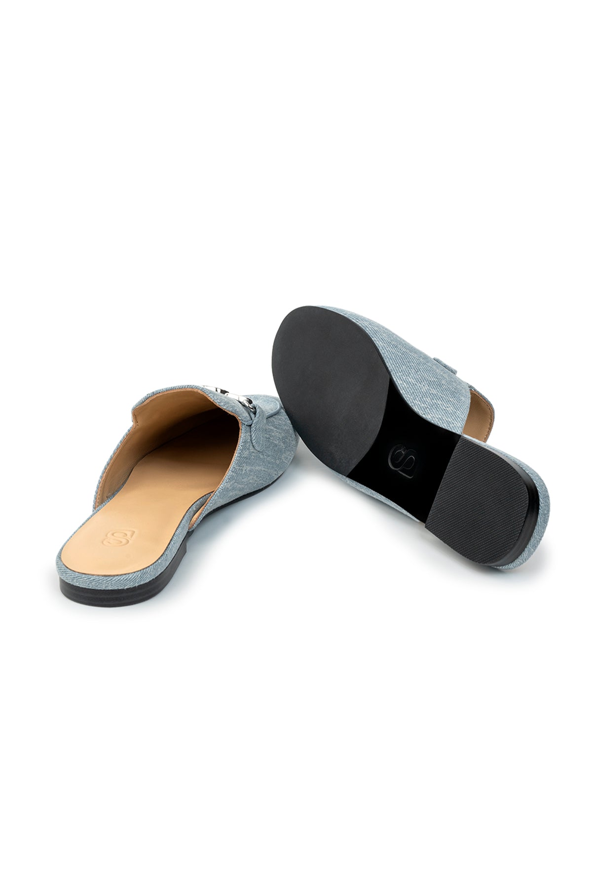 This pair of denim slippers is defined by its comfortable slip-on loafer style. As a smart pick for jazzing up an outfit, It's embellished with a signature B accessory for an effortlessly chic and luxurious appeal.