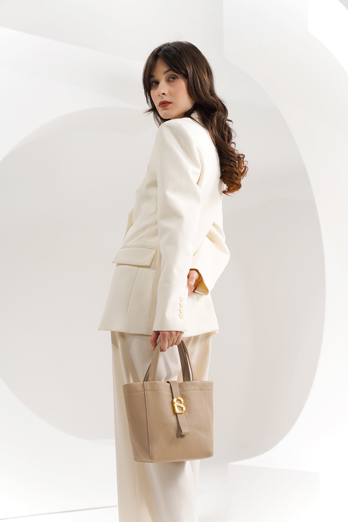 Made from high-quality pebble cow leather, it features a secure magnetic closure, an adjustable crossbody strap, and comfortable leather handles. This versatile bag also includes a removable zip pouch for added convenience.