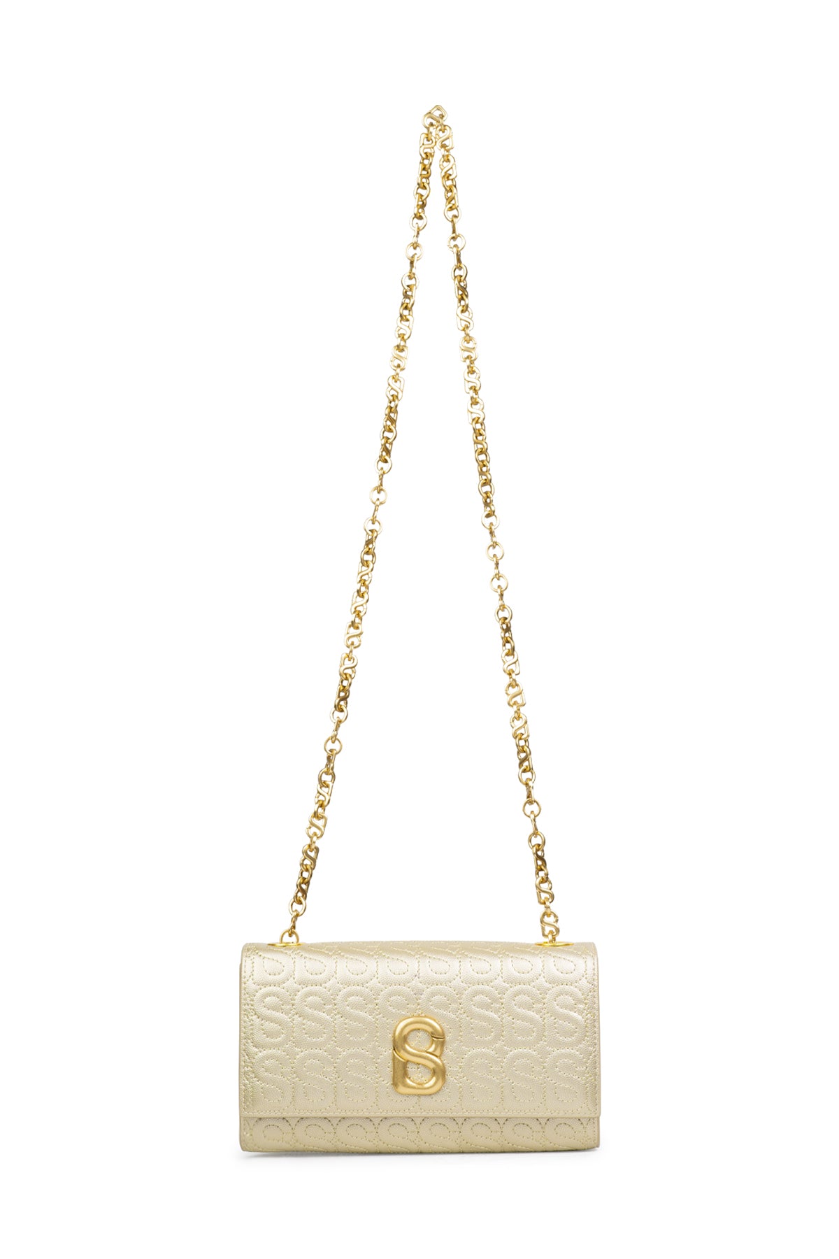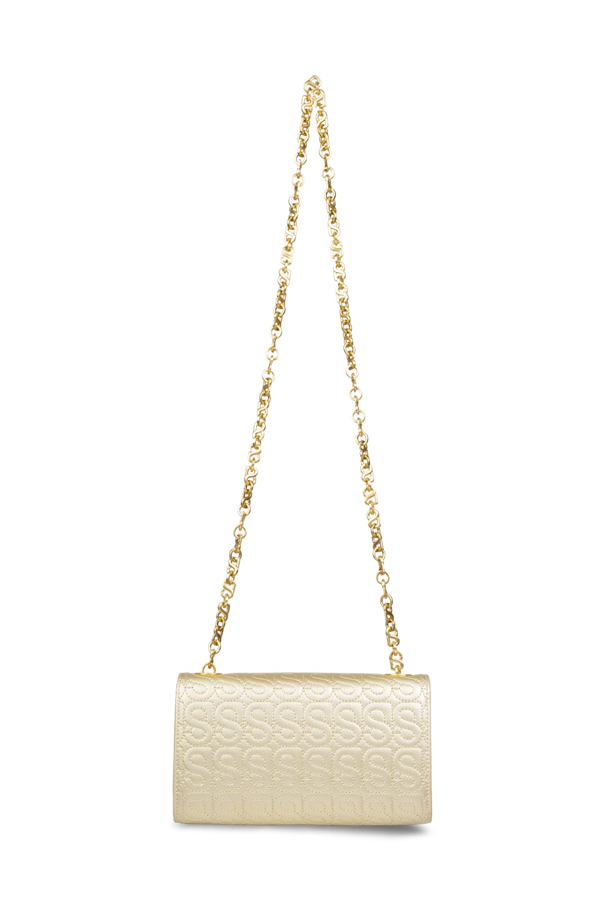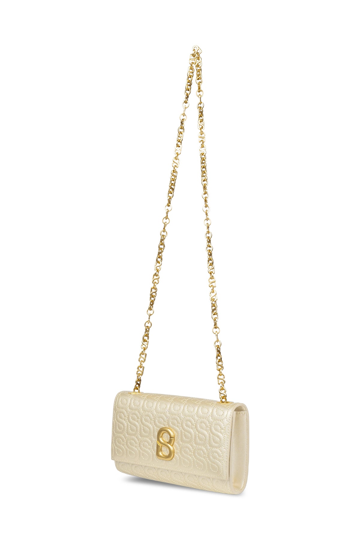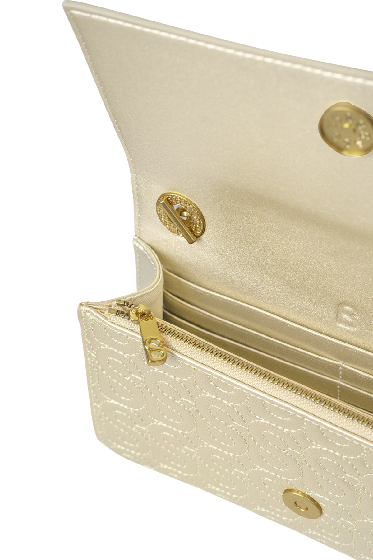A genuine leather piece quilted with the signature B for a touch of sophistication. The functional and spacious interior features dedicated slots and compartments for cards and banknotes. With chain-link shoulder strap and golden-finished signature B logo complete the design.
