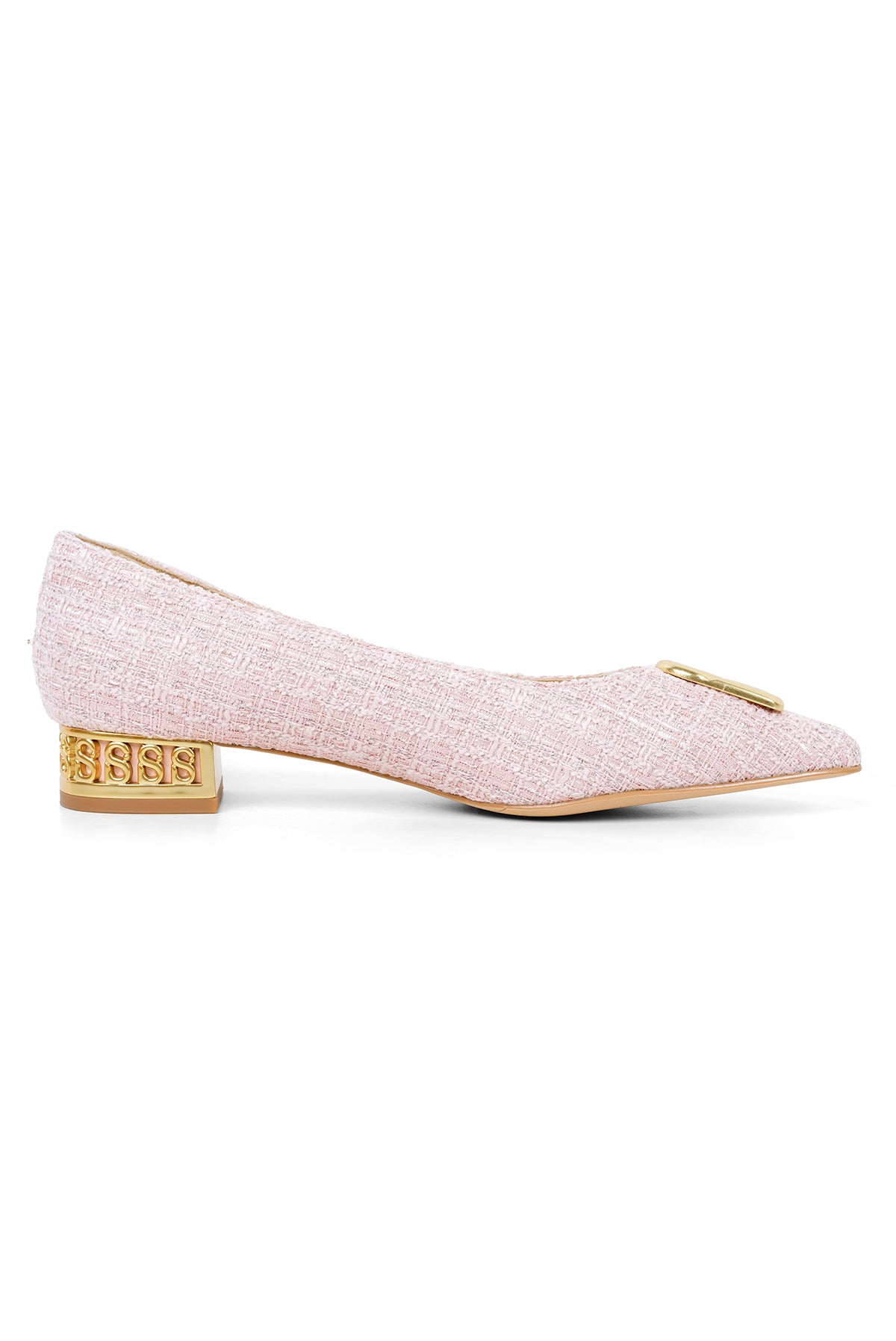 Now comes in exquisite tweed fabric, these pumps have a sleek pointy toe design that exudes elegance, while the slip-on style ensures effortless wearability. Adding a touch of luxury is the signature B gold hardware embellishment adorning the top.