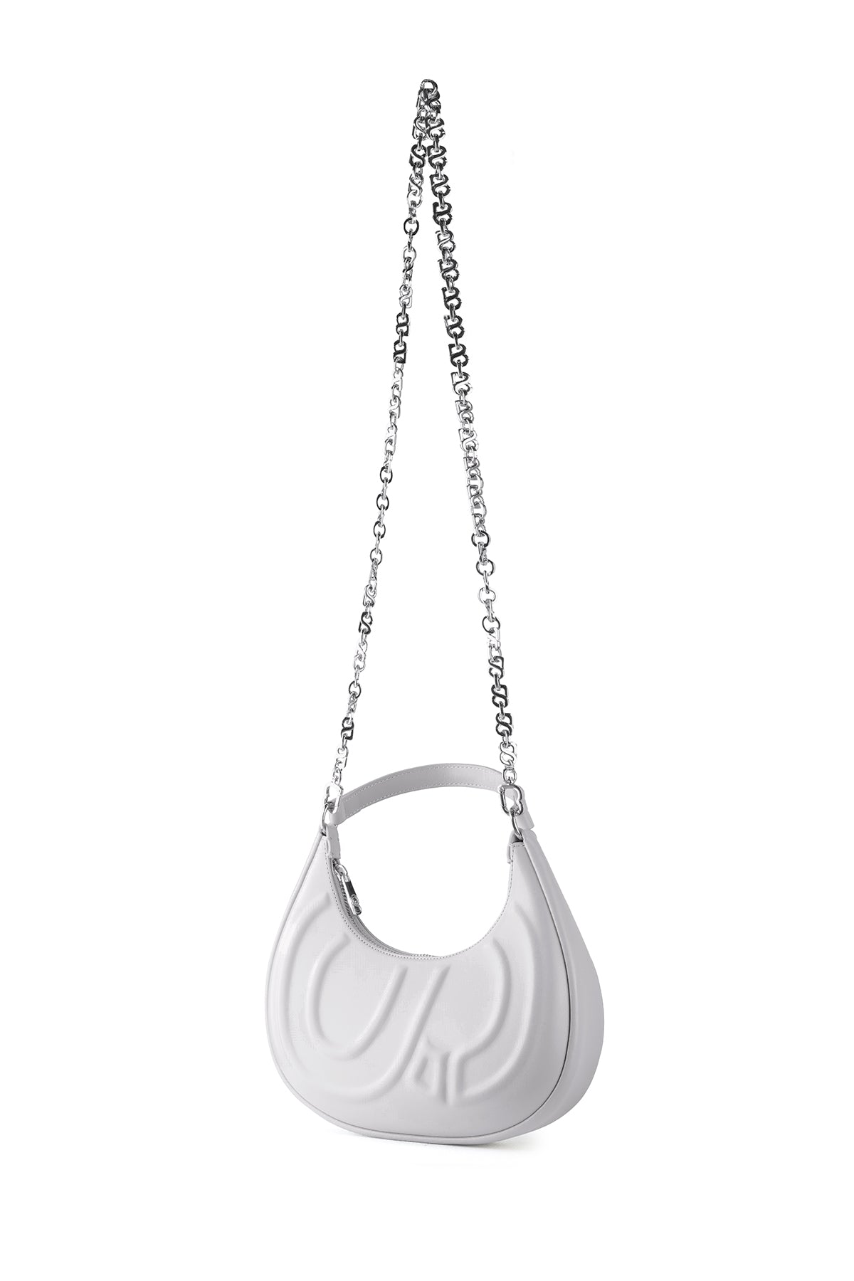 Crafted from exquisite smooth cow leather and delicately lined with microfiber, this half-moon-shaped bag emanates luxury in every detail. Adorning its front is the iconic Signature B logo, featuring a convenient zipper closure, a shoulder leather strap, and a removable chain-link strap option, allowing for various styling possibilities.