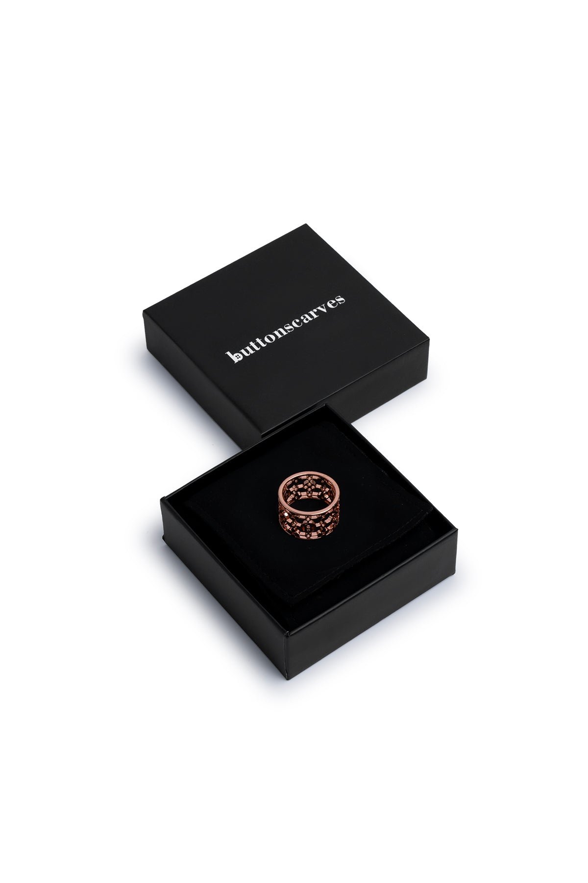 The Mona Ring Brooch comes beautifully wrapped in a special hard box that includes Suede Sleeve and Care Instruction Card.