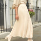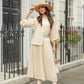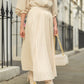 As the highlight from the 2023 Jakarta Fashion Week, this skirt exudes timeless elegance with a contemporary twist featuring the signature monogram "B" embossing adds a touch of luxury to the fabric, while meticulously crafted pleats create a graceful, flowing silhouette.