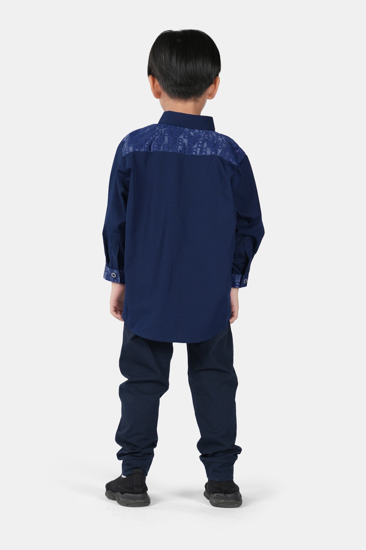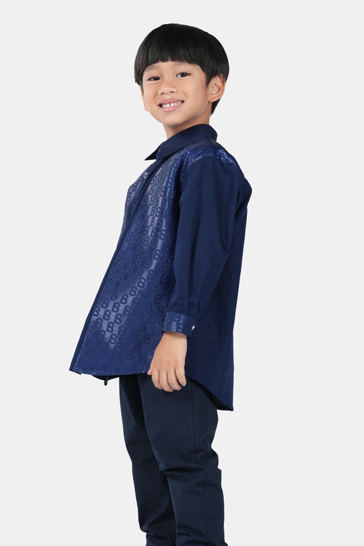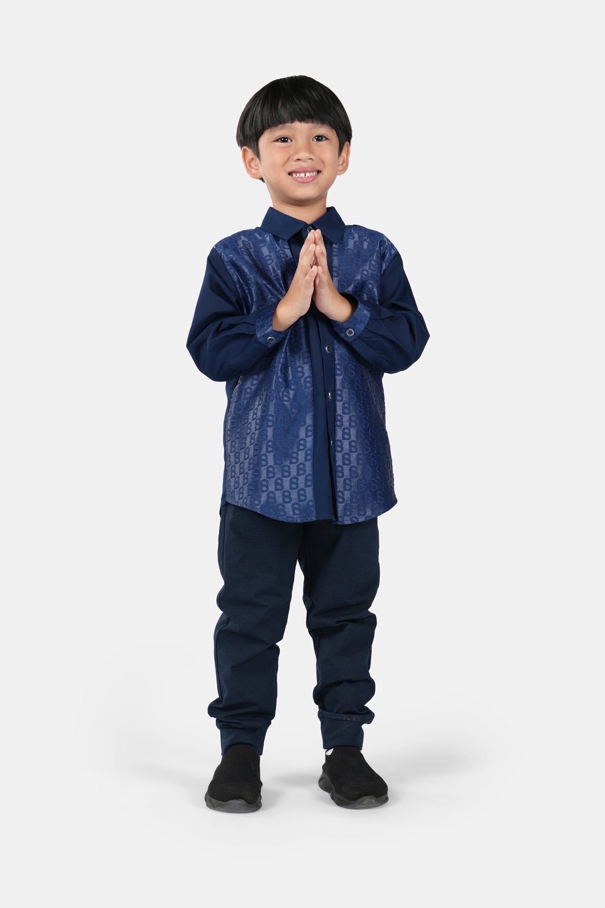 Featuring a classic collar, front button opening, and long sleeves with buttoned cuffs, this stylish shirt ensures a smart yet comfortable fit. It's crafted in monogram jacquard, making it perfect for Raya celebrations and twinning with your little ones.