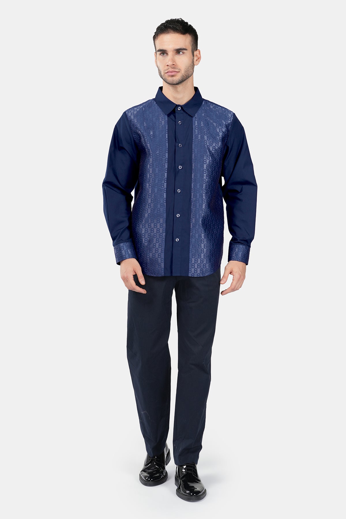 Designed exclusively for the Raya collection and for the modern man who values both style and comfort, this shirt features an elegant jacquard with a signature B monogram pattern. It's accentuated with a classic pointed collar, front button opening, and long sleeves with buttoned cuffs for a polished look.