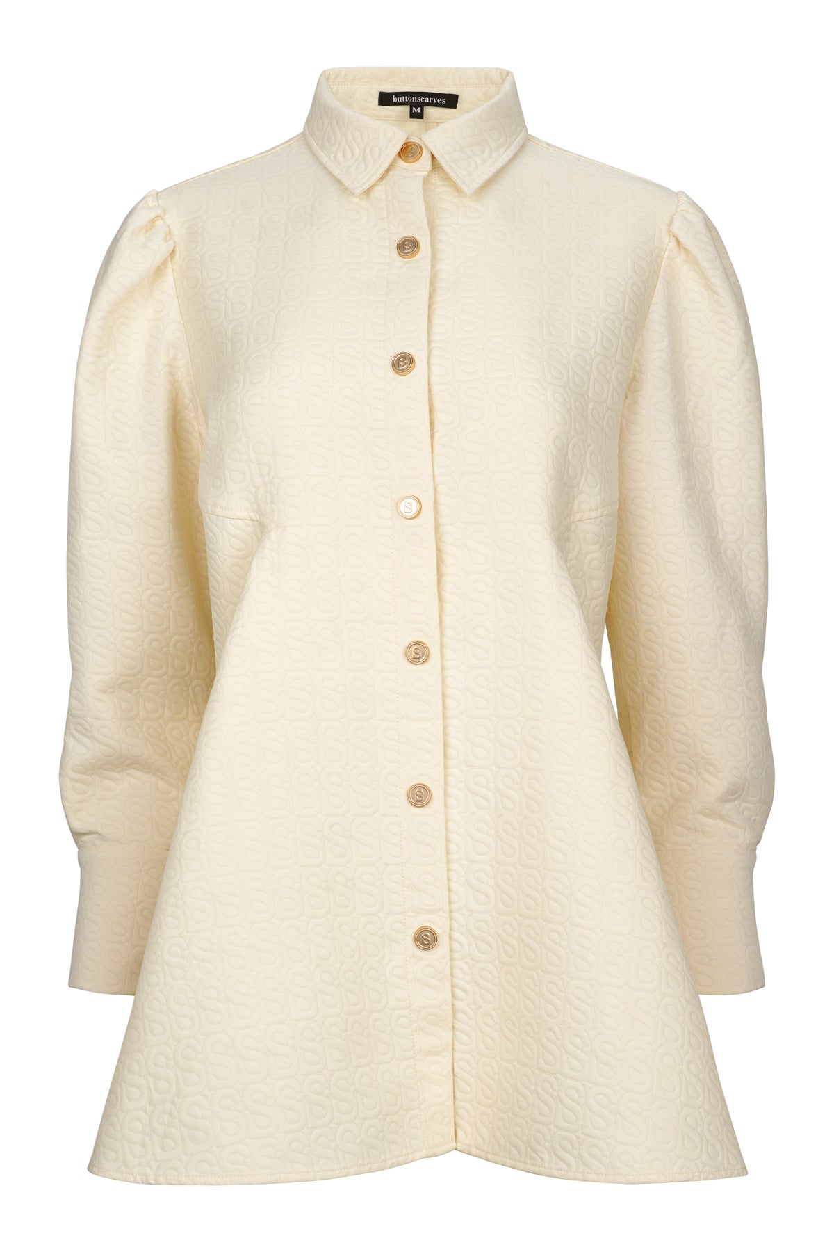 Adorned with the signature Monogram Luna pattern, this shirt brings elegance to everyday wear. Featuring a draped hem and puffy sleeves for a touch of drama for an effortlessly chic look.