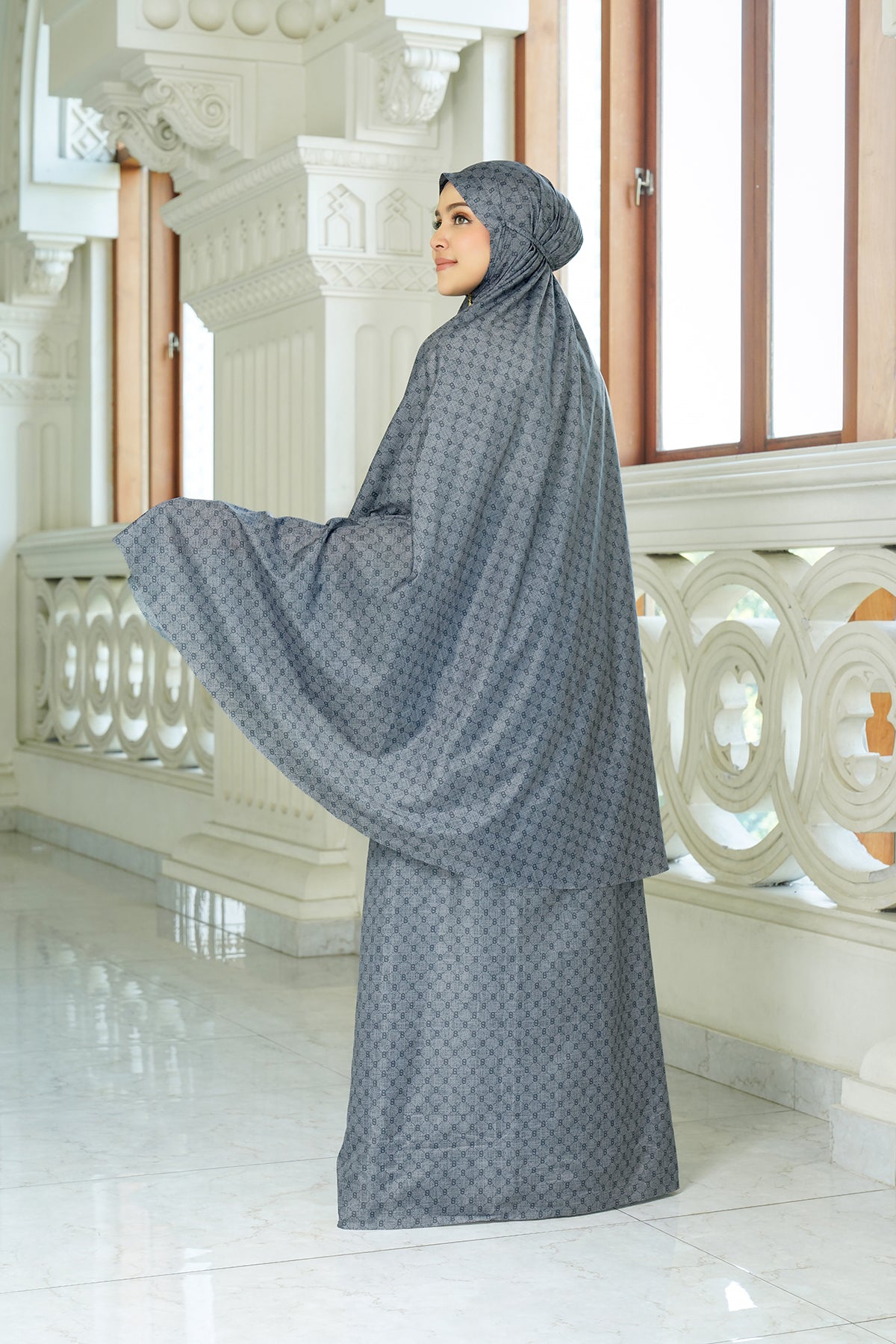 Featuring a convenient zipper beneath the chin area, this prayer robe is further enhanced with the signature B monogram pattern. Compact, lightweight, and easy to carry, this travel-friendly prayer robe ensures your prayer with ease and grace, wherever you go.