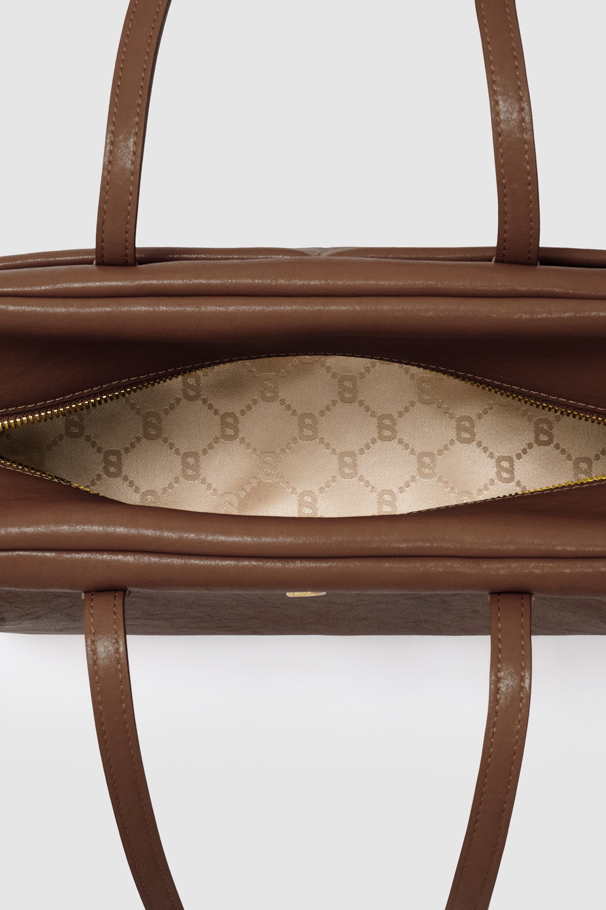 An elegant shoulder bag with an elegant silhouette that embodies modern simplicity. Crafted from leather with a smooth finish, it’s accented by a signature gold B logo. The full zipper opening ensures your essentials stay secure, while the slim shoulder strap offers a comfortable fit for daily wear.