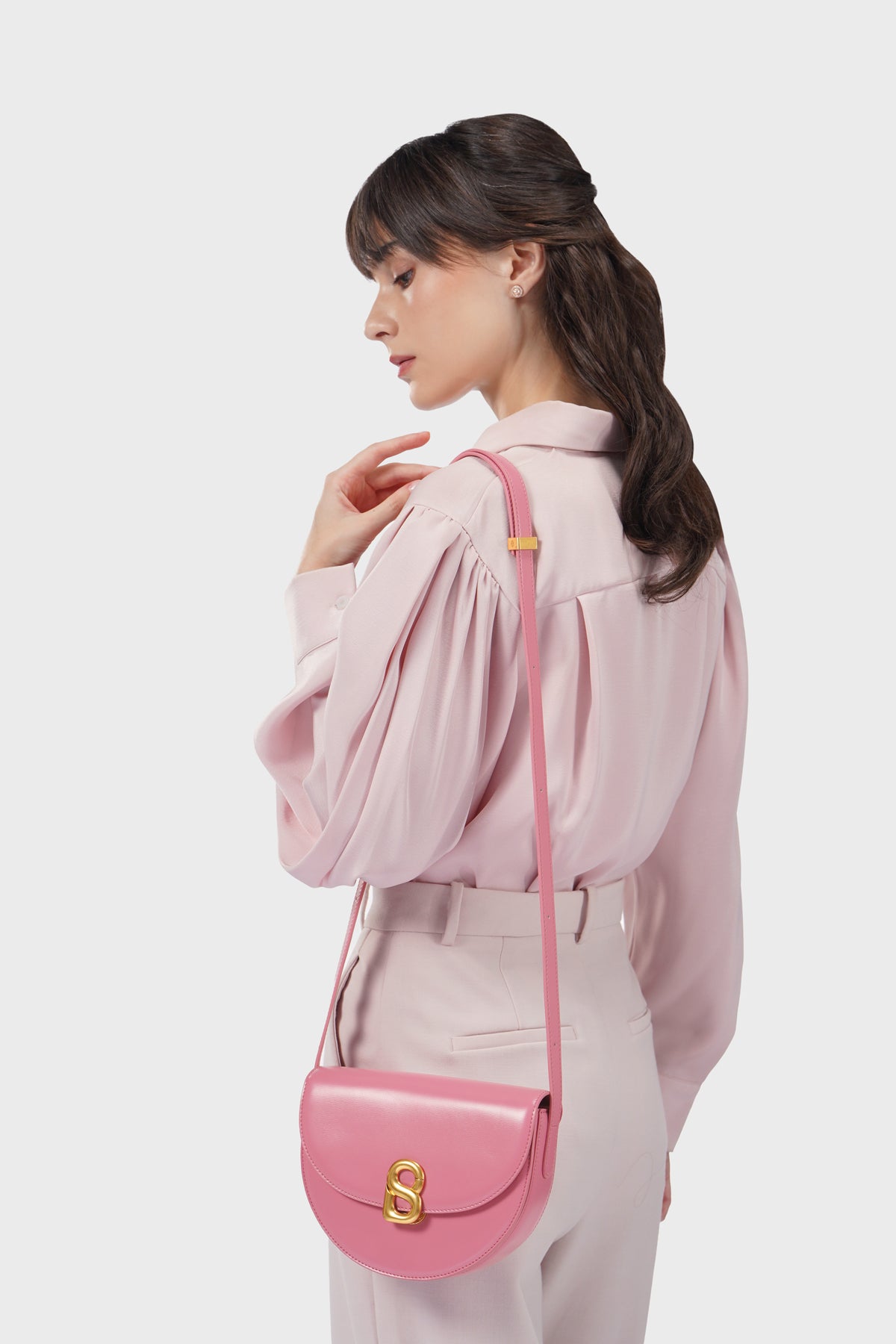 Everyone's favorite, now back with thoughtful updates. The beloved half-moon bag is back—crafted from smooth cow leather, finished with the signature gold B logo, and now designed with an adjustable strap for extra ease.