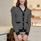 Crafted with high-quality materials and meticulous attention to detail, this cardigan is adorned with a captivating plaid motif and our signature B monogram. It features two front pockets for both functionality and casual elegance, while the puff sleeves add a touch of charm to the overall silhouette