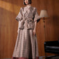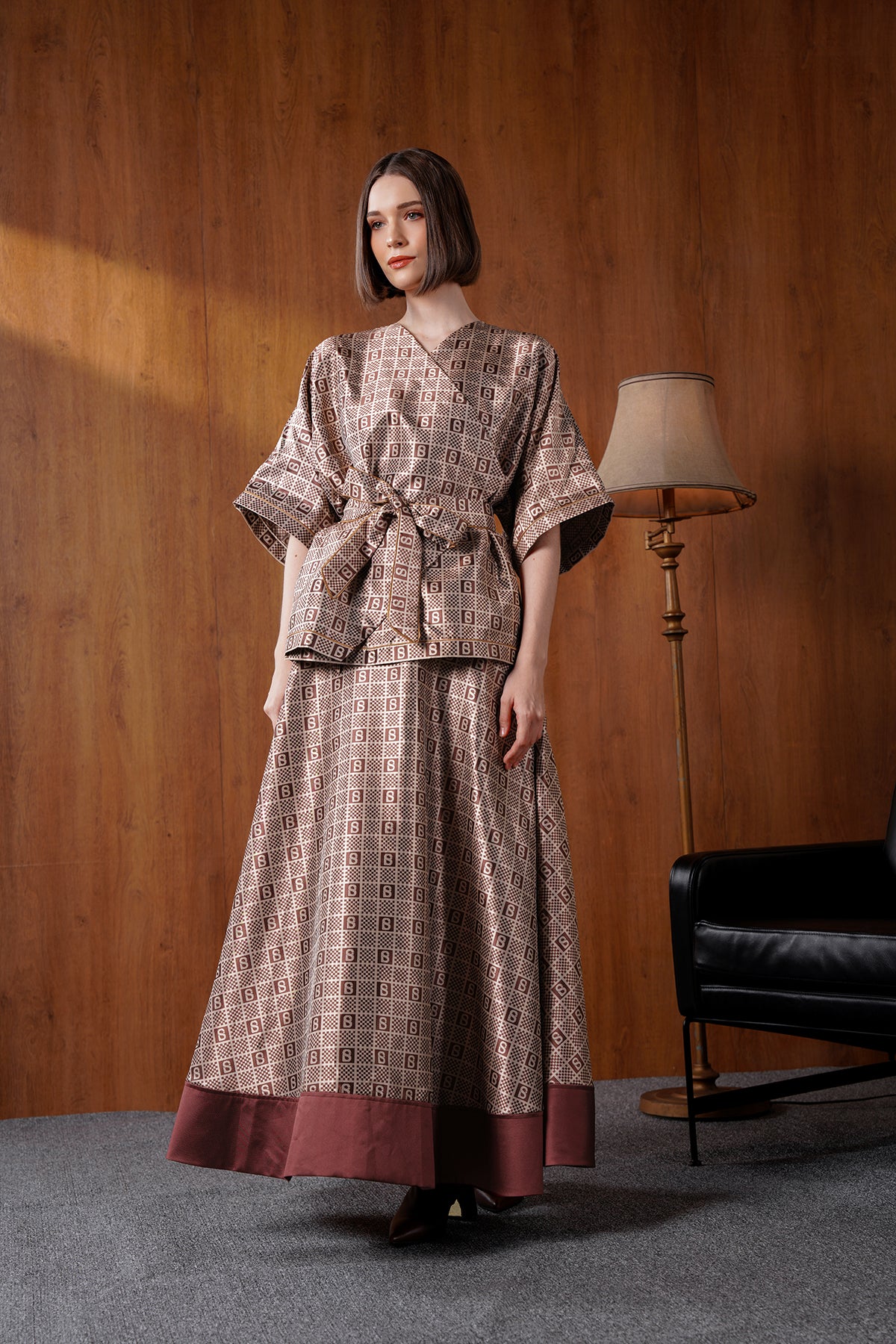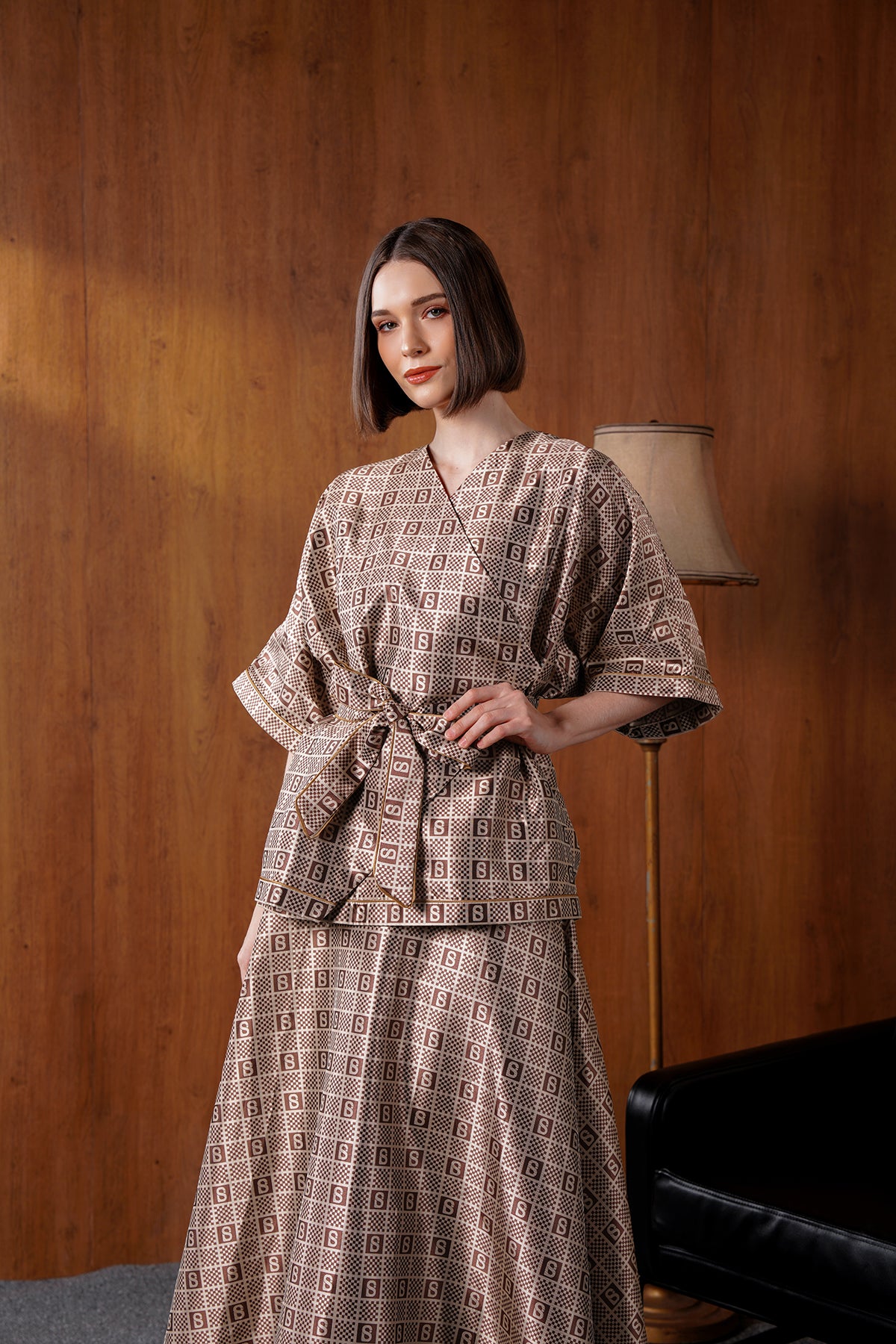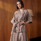 Crafted with our signature monogram plaid pattern adorning every inch, this outerwear exudes timeless sophistication. The wrapped design and self-tie belt create a flattering silhouette.