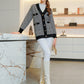 A striking combination of timeless elegance and modern style. This outer is adorned with a captivating plaid motif featuring our signature B monogram, it exudes sophistication and character. Features four functional pockets, adding a touch of utility while maintaining a refined aesthetic.
