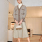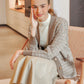 A striking combination of timeless elegance and modern style. This outer is adorned with a captivating plaid motif featuring our signature B monogram, it exudes sophistication and character. Features four functional pockets, adding a touch of utility while maintaining a refined aesthetic.