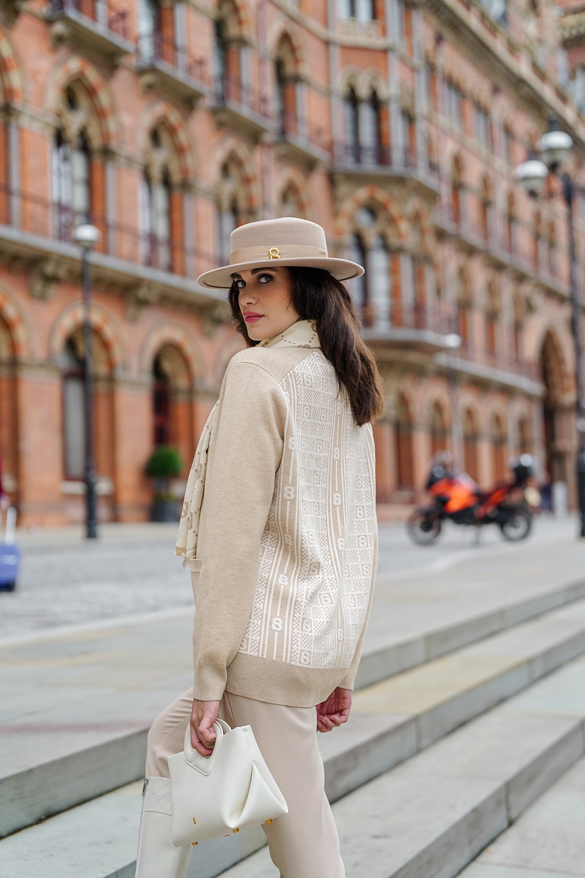 Crafted from 100% Camel Wool, this cardigan features the signature monogram B pattern on the inside and a signature B logo on the left chest. Its relaxed silhouette makes it a versatile must-have for cozy yet chic ensembles.