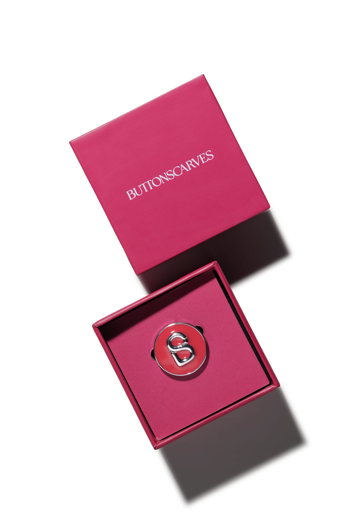Featuring a minimalist rounded frame, this piece showcases the signature "B" logo against a refined enamel background. A subtle yet striking accessory for any ensemble.