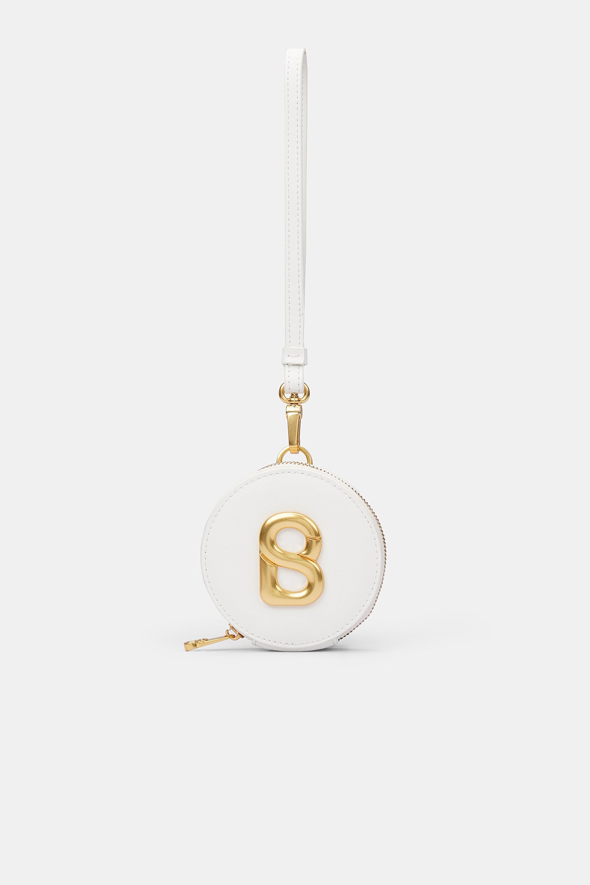 A stylish and multifunctional accessory designed for both practicality and charm. Its rounded silhouette makes it perfect for use as a bag charm or a compact purse for storing small essentials. It's accentuated by the bold B metal logo at the front.