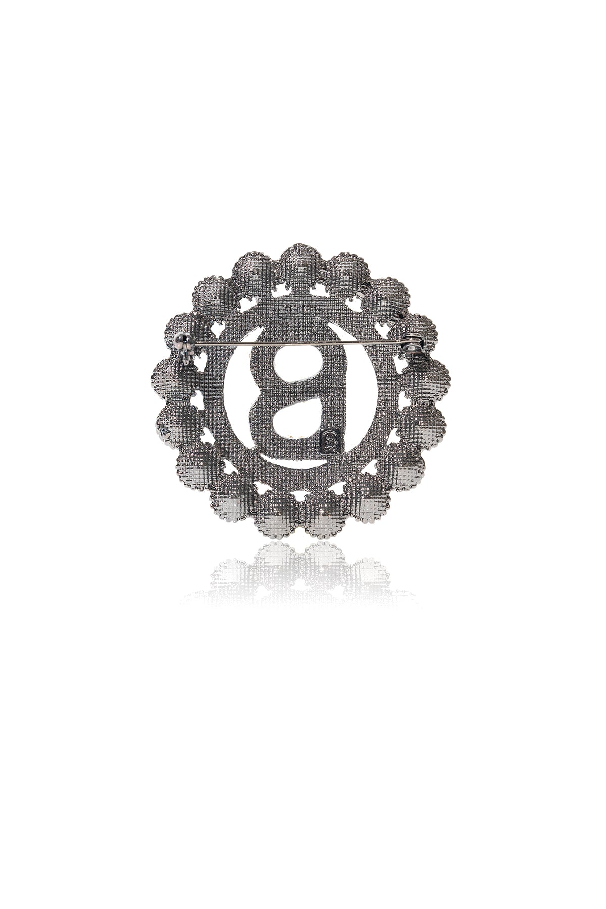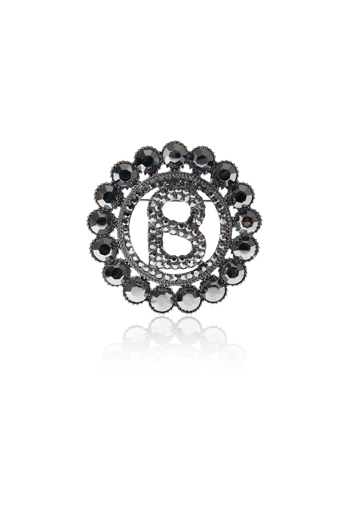 As a luxurious and elegant addition, this rounded frame brooch is adorned with sparkly crystal rhinestones made of 18k Gold Plated and accentuated with the Signature B Logo in the center.