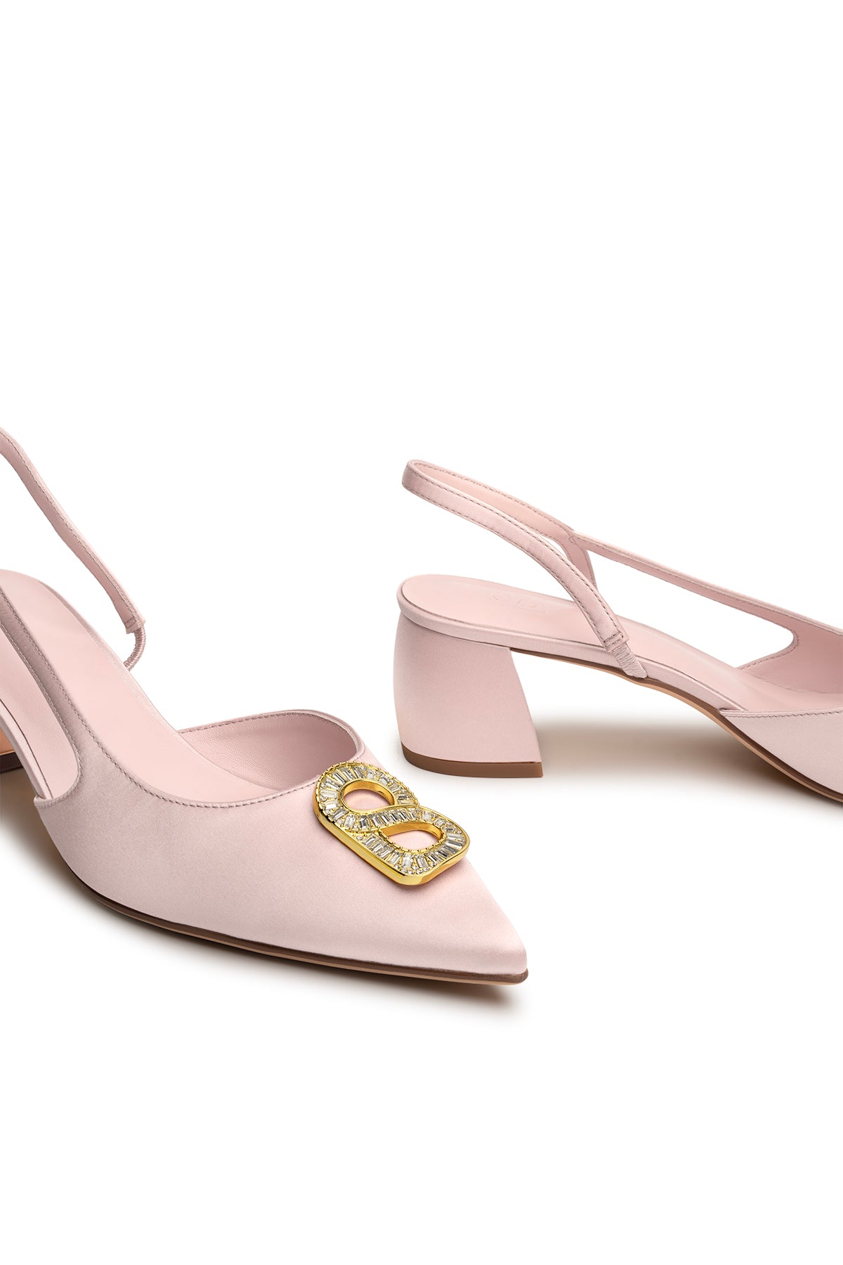 In collaboration with Sarah Sofyan, the Sarah shoes are bringing her unmistakable classy and elegant style. Embellished with brilliant signature B hardware, designed with an elasticated slingback strap, pointy toe, and block heel that gives them an elegant, refined silhouette.