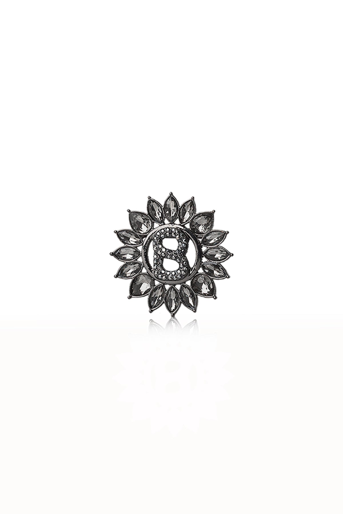 This rounded is defined by the leaves-shaped stones encircling the signature B in the middle. This statement accessory will add a touch of sparkle and elegance to any ensemble.
