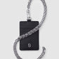 Crafted from pebble leather, this lanyard features a chain strap for a sleek and elevated touch. It includes a clear ID window on one side and card slots on the other, finished with a signature B logo.