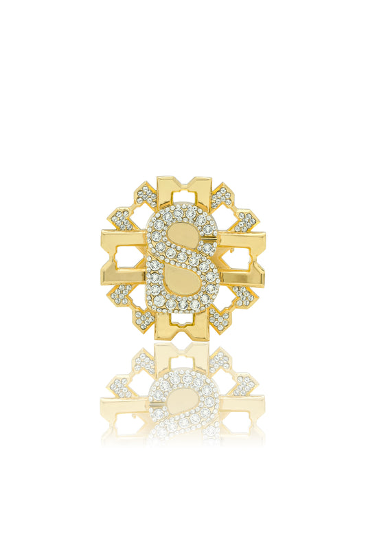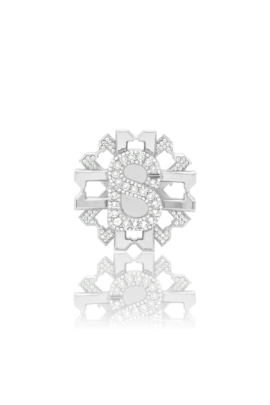 The epitome of functional fashion and style with practical use and a vibrant aesthetic. Shaped in the signature B silhouette, this brooch is defined with sparkling stones with a touch of glamor.