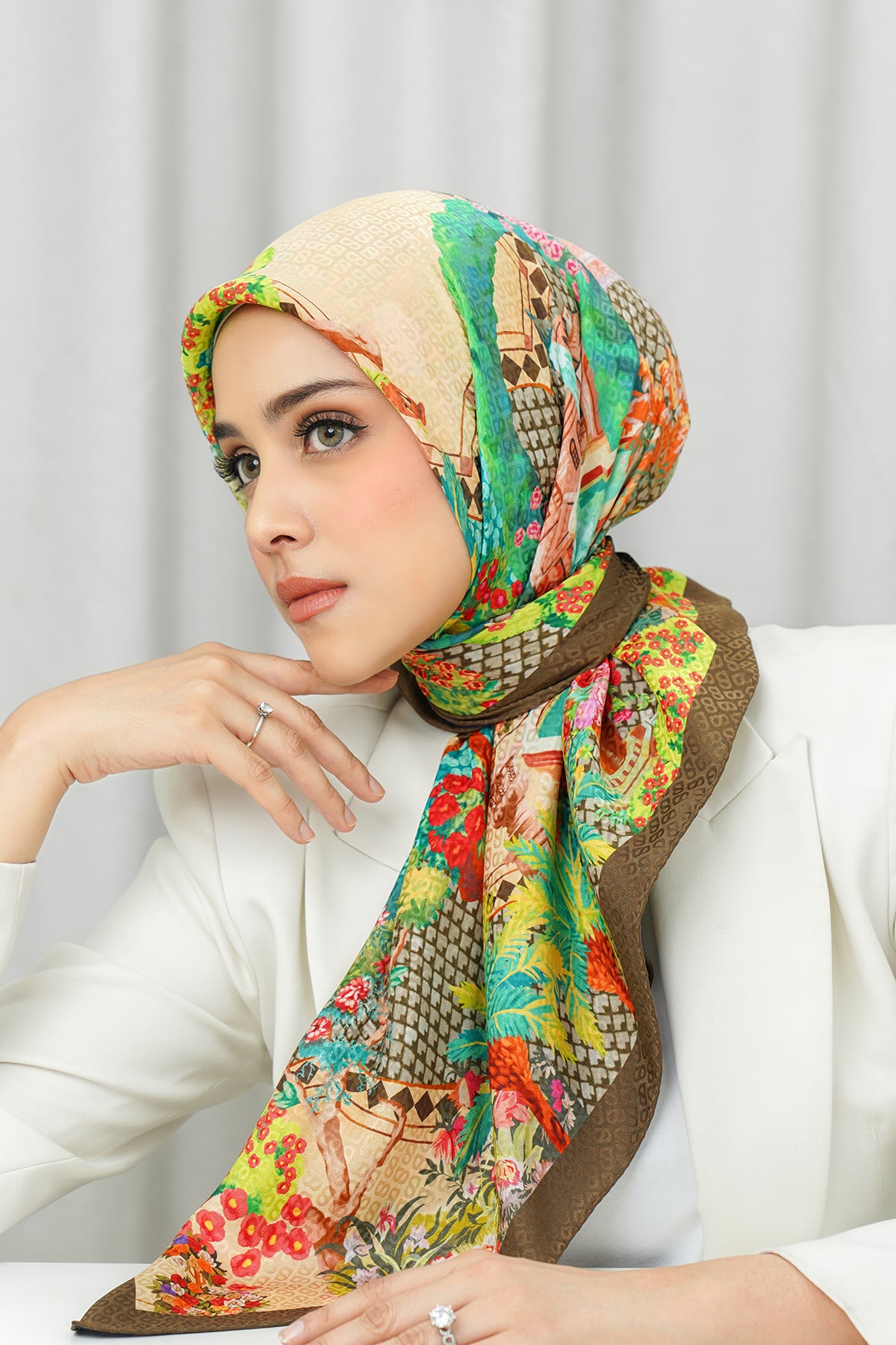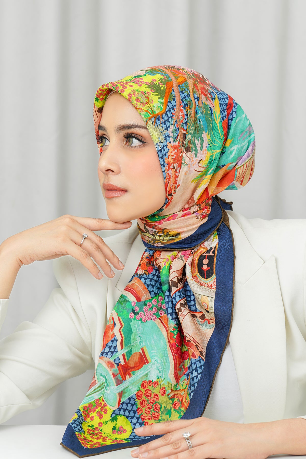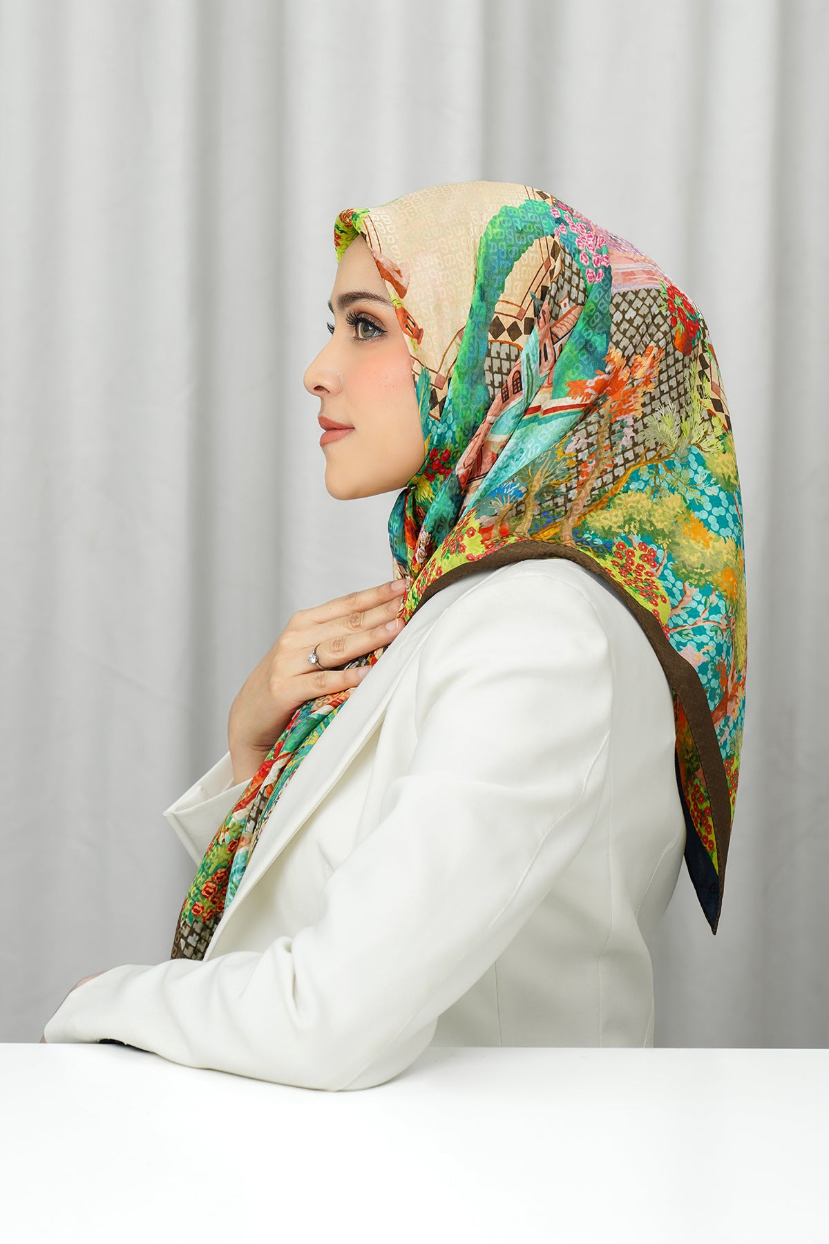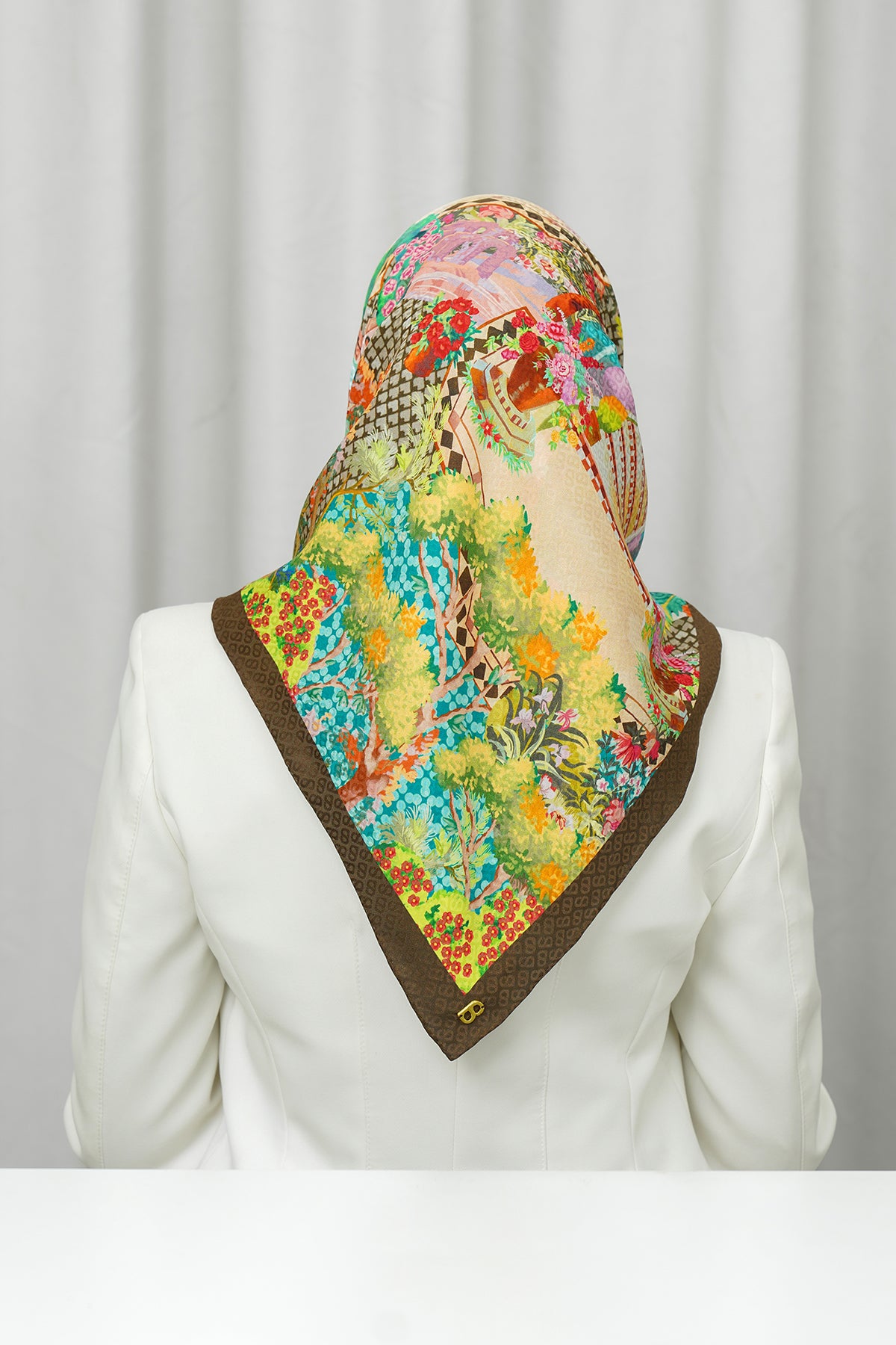 Silk Jacquard Square - Prince Garden Brown & Blue