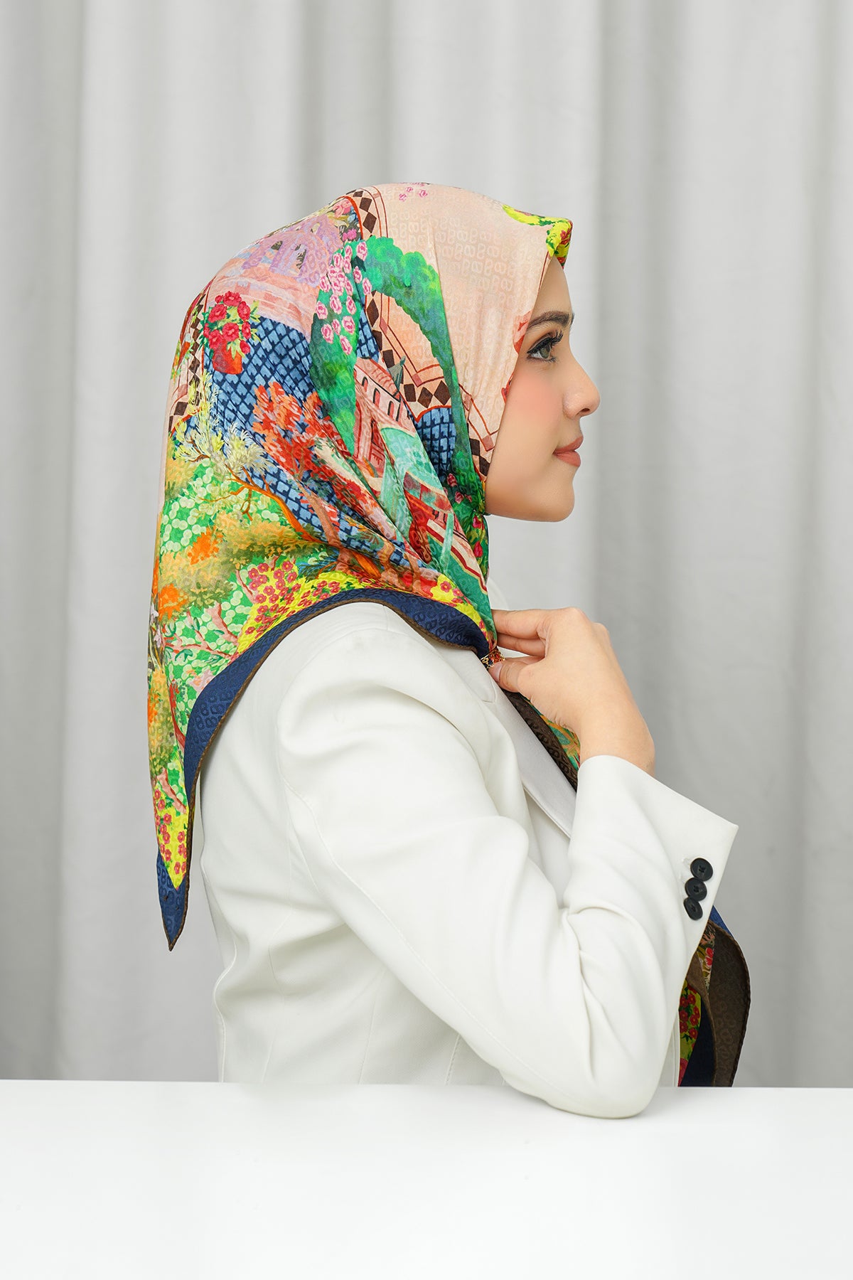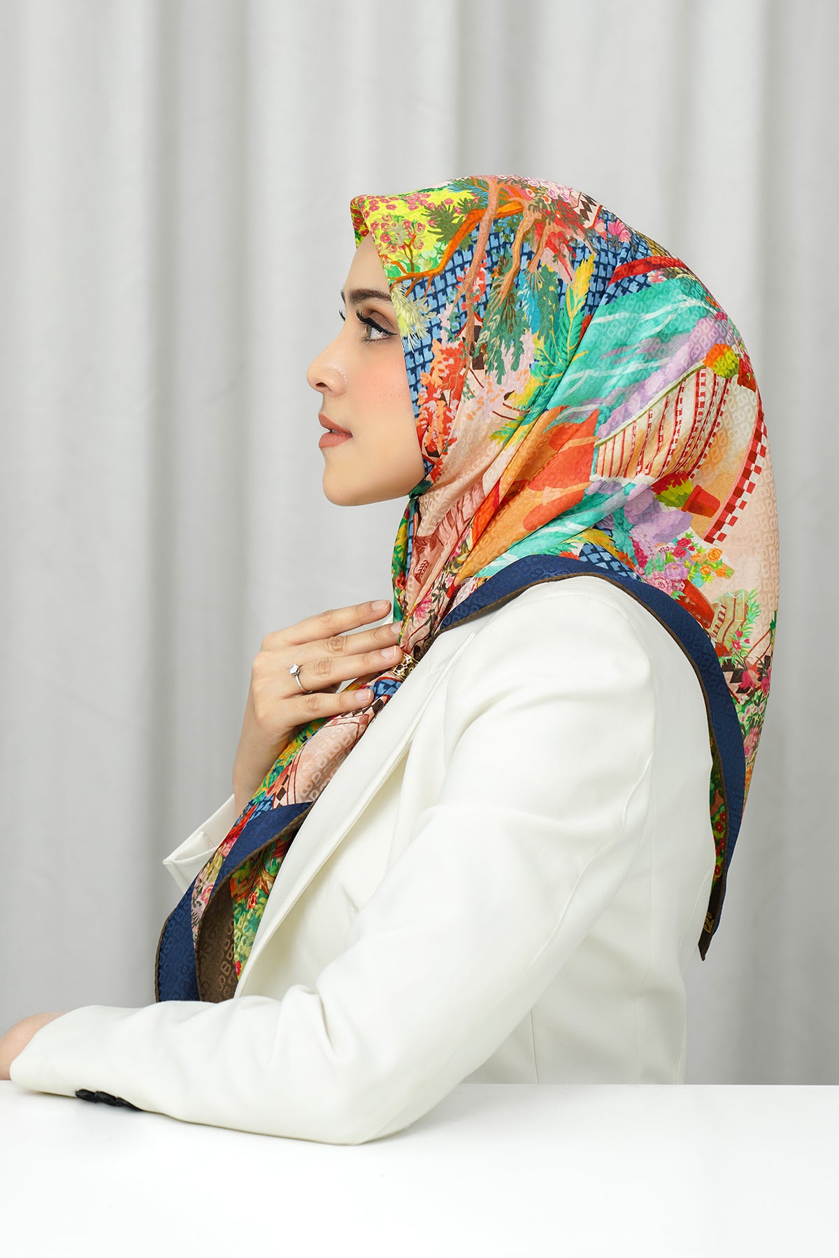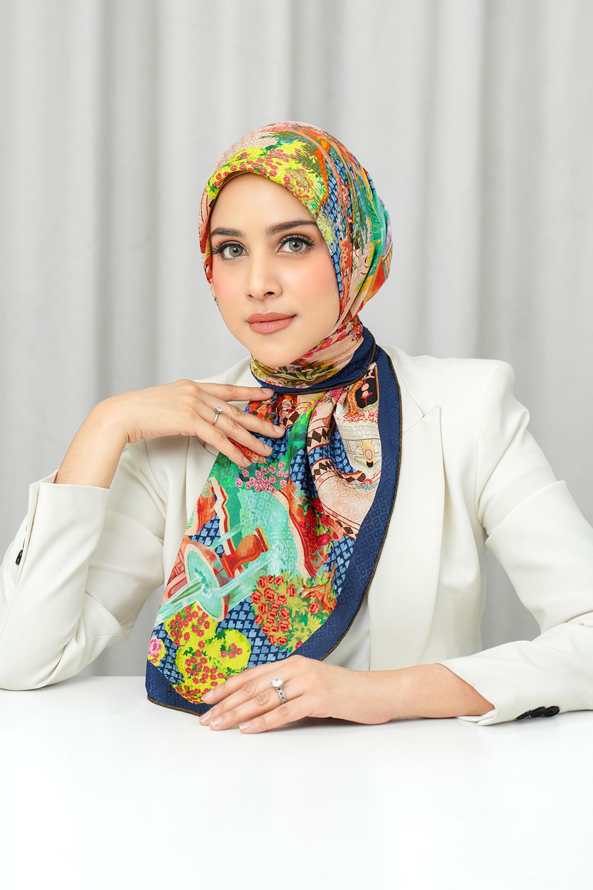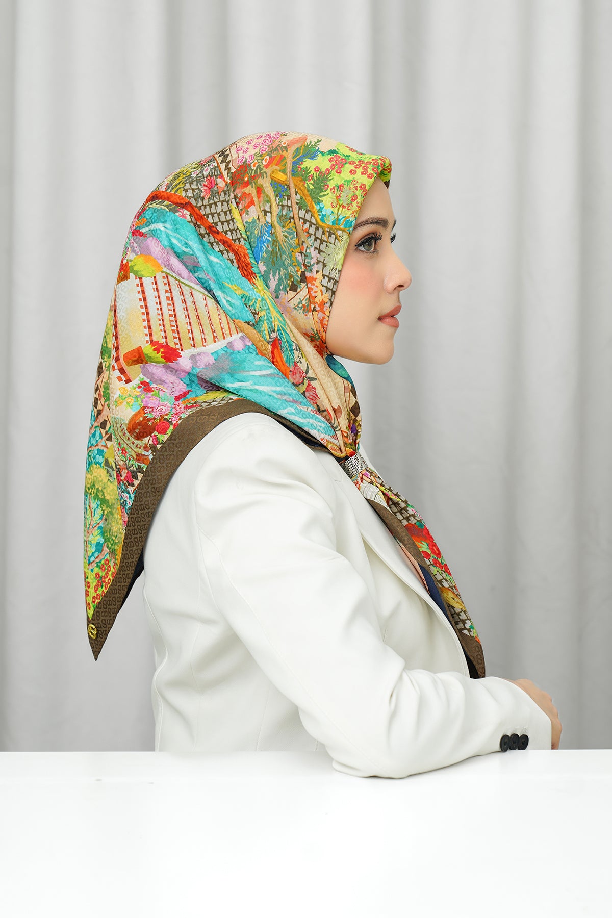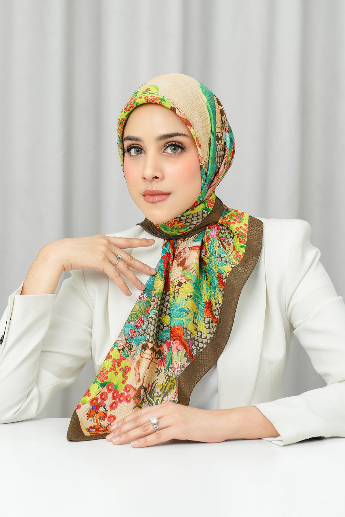 Silk Jacquard Square - Prince Garden Brown & Blue
