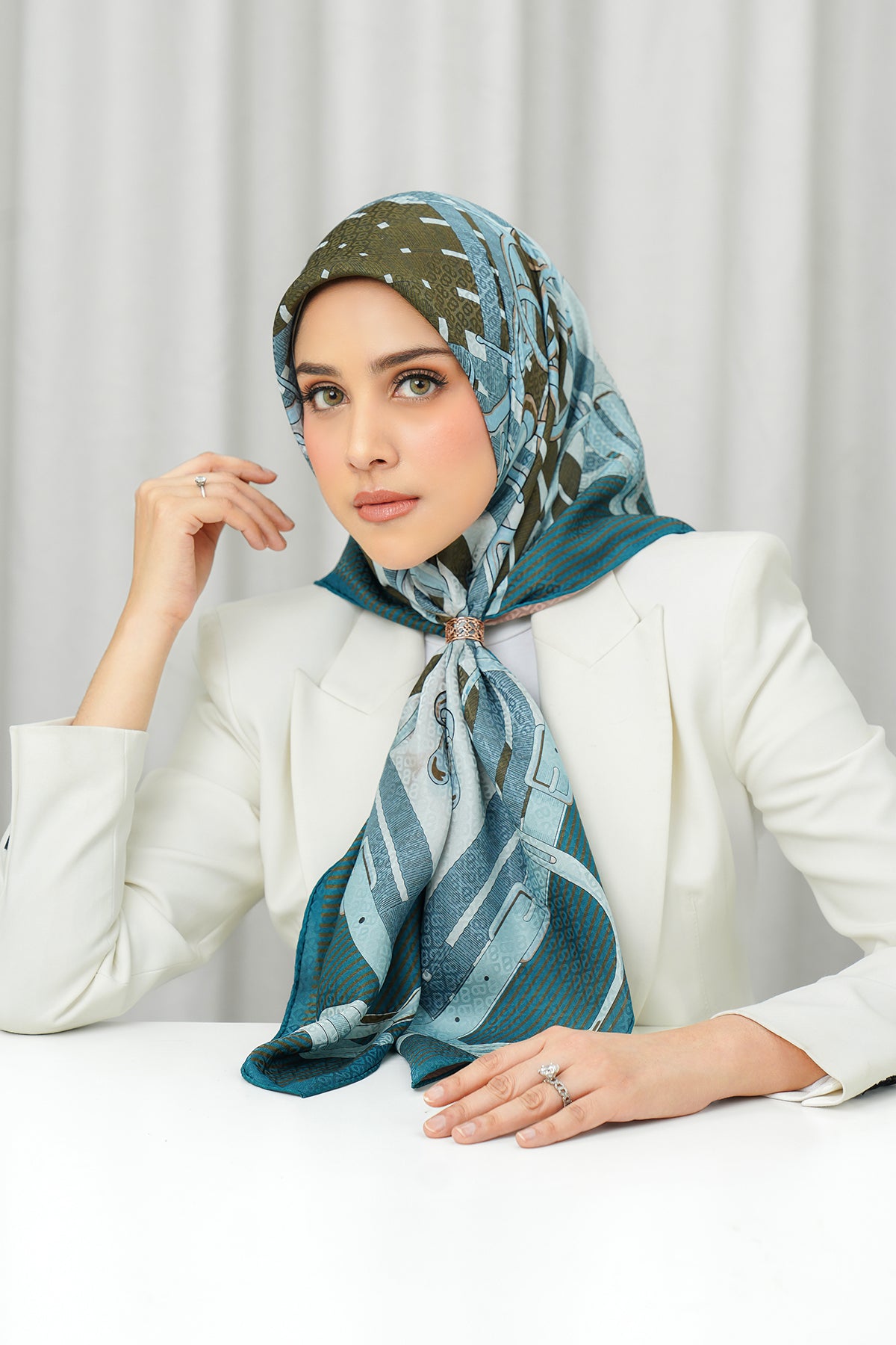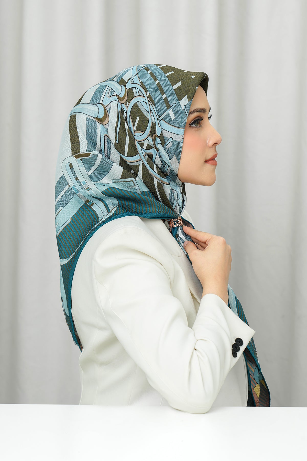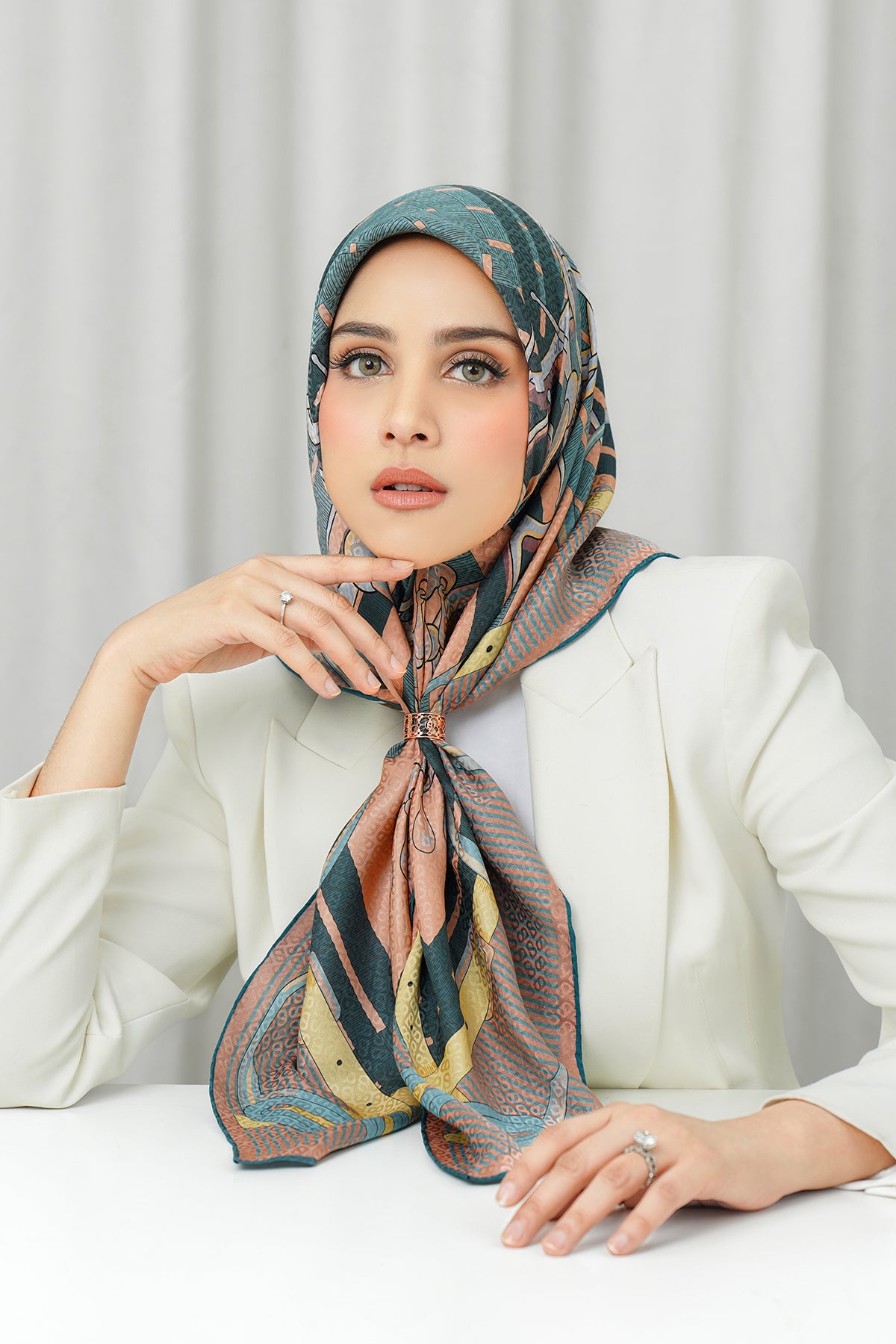 Silk Jacquard Square - Saddle Peach & Blue