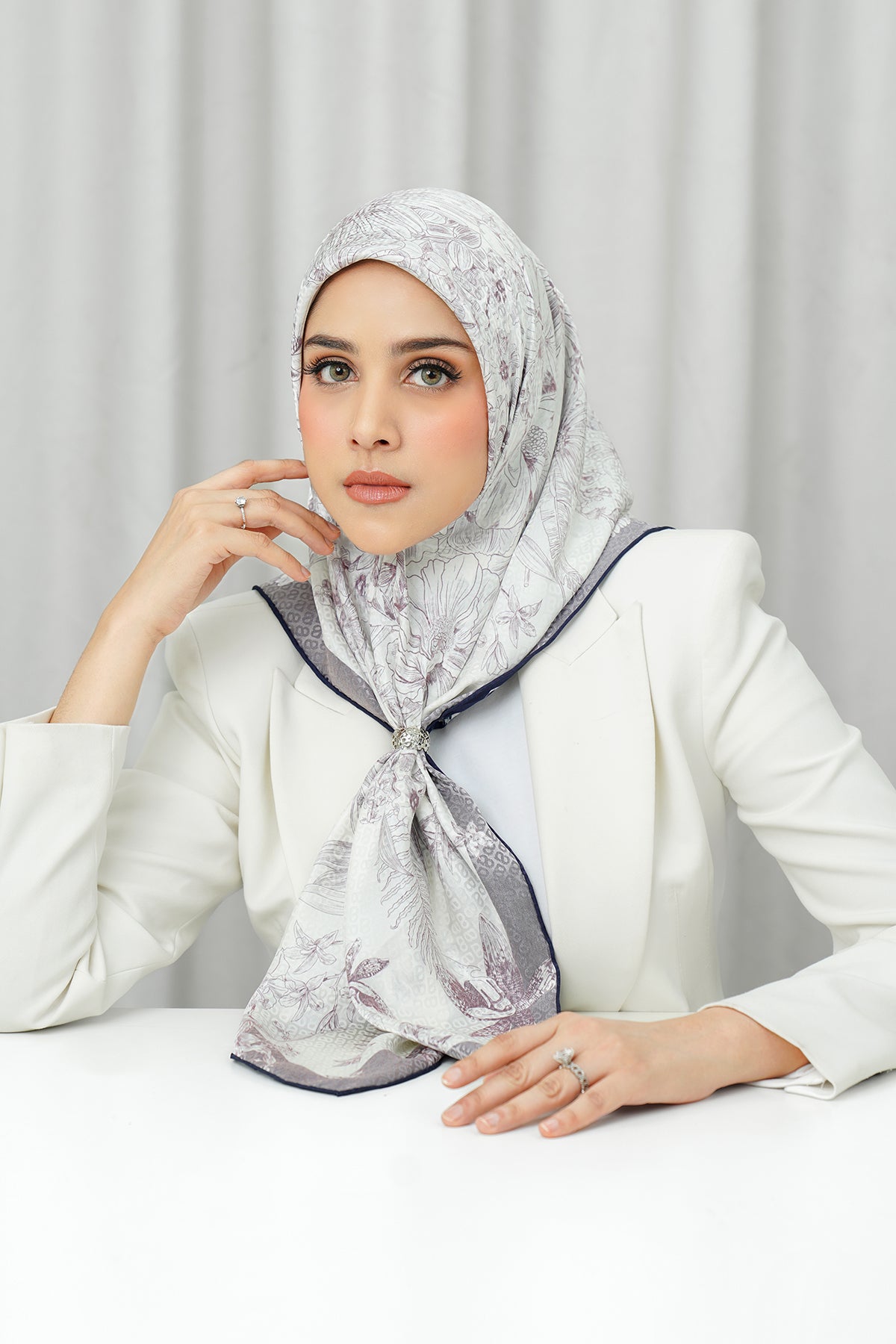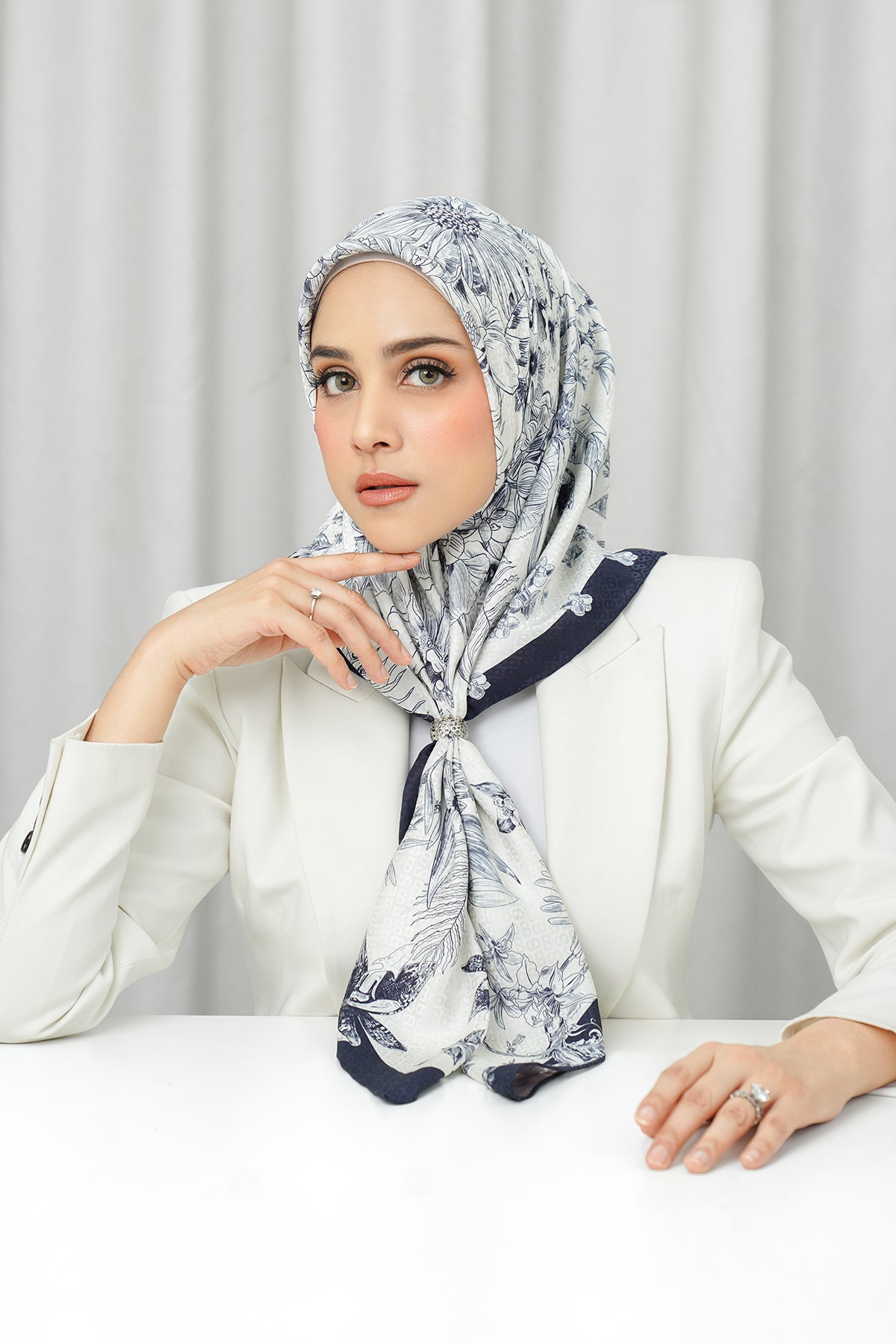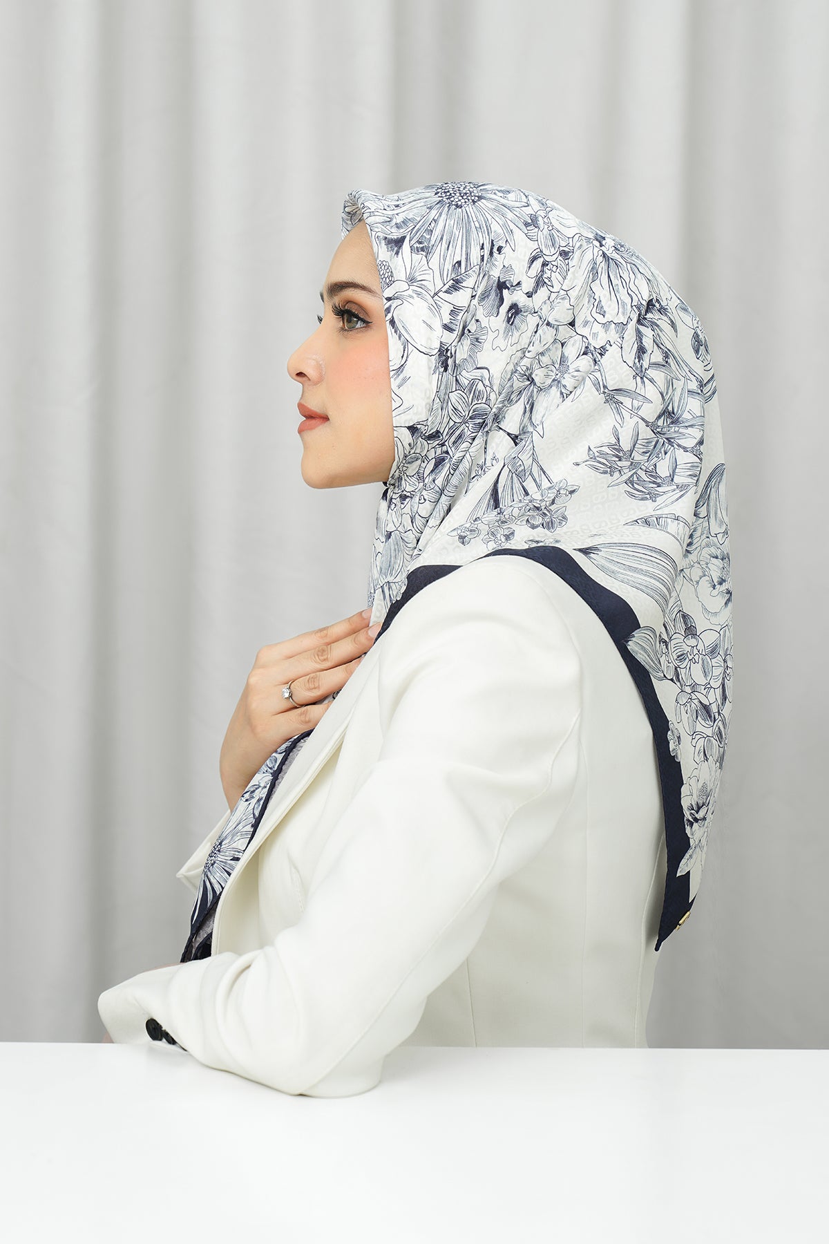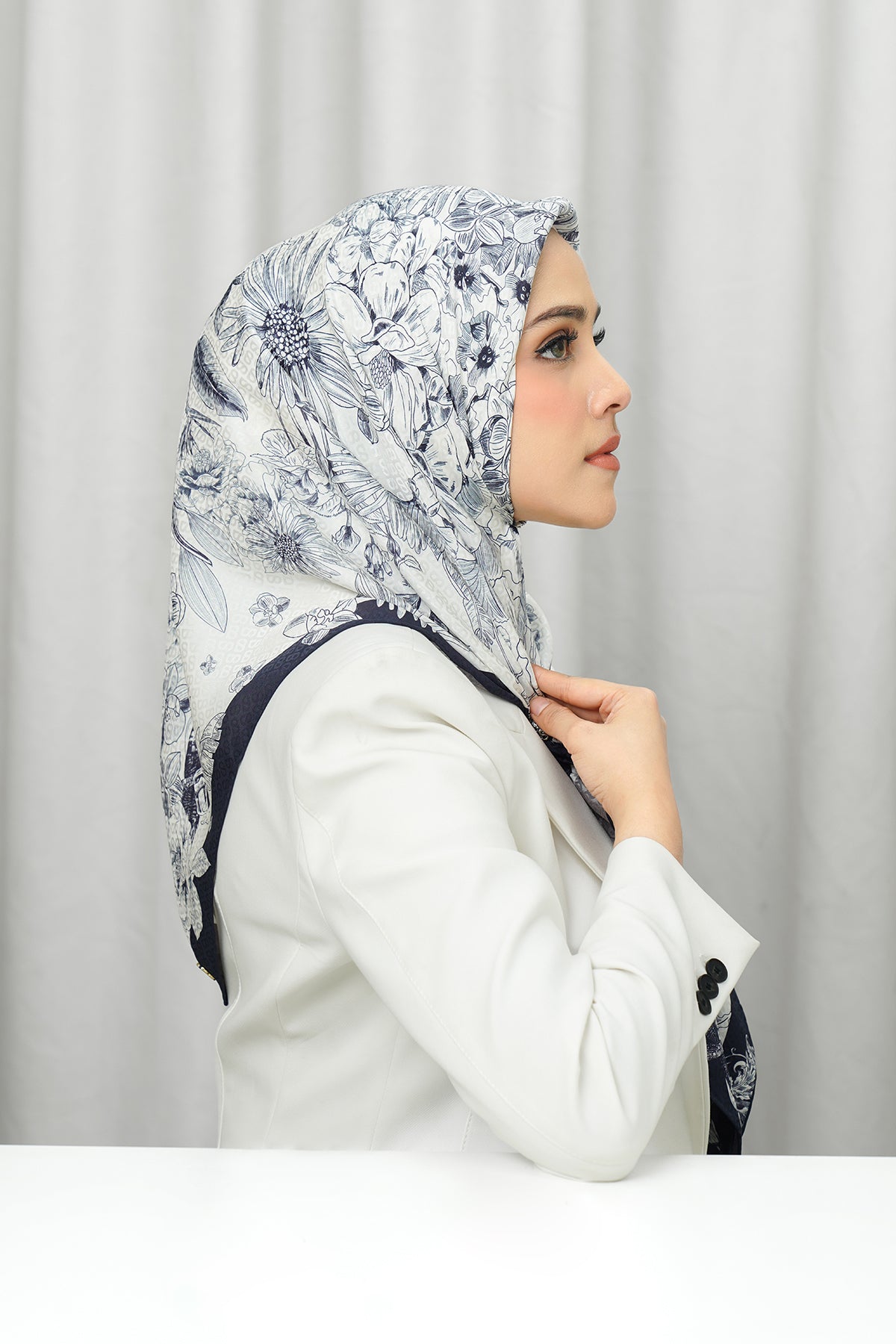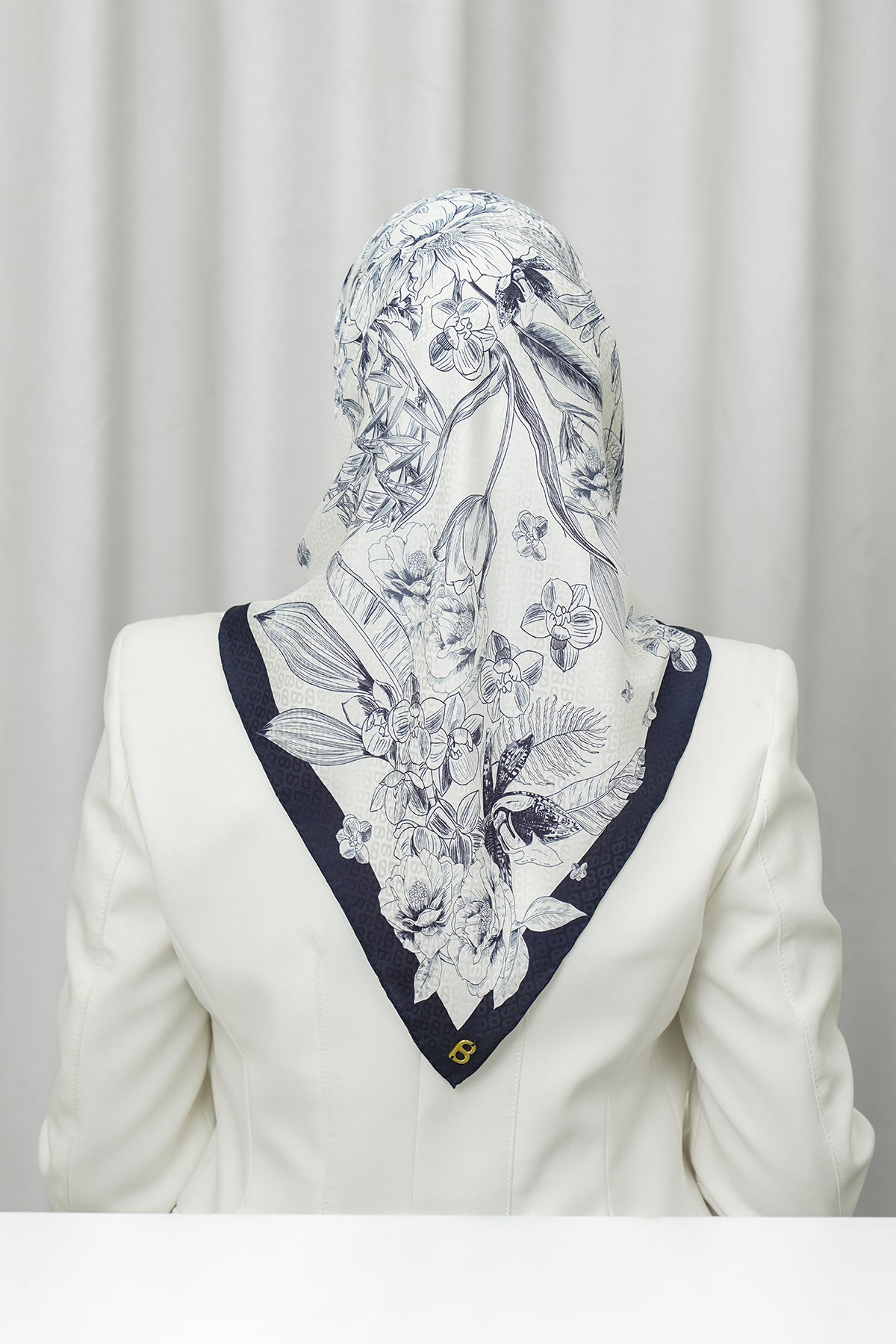 Silk Jacquard Square - Toile de Jouy Blooming Navy & Amethyst
