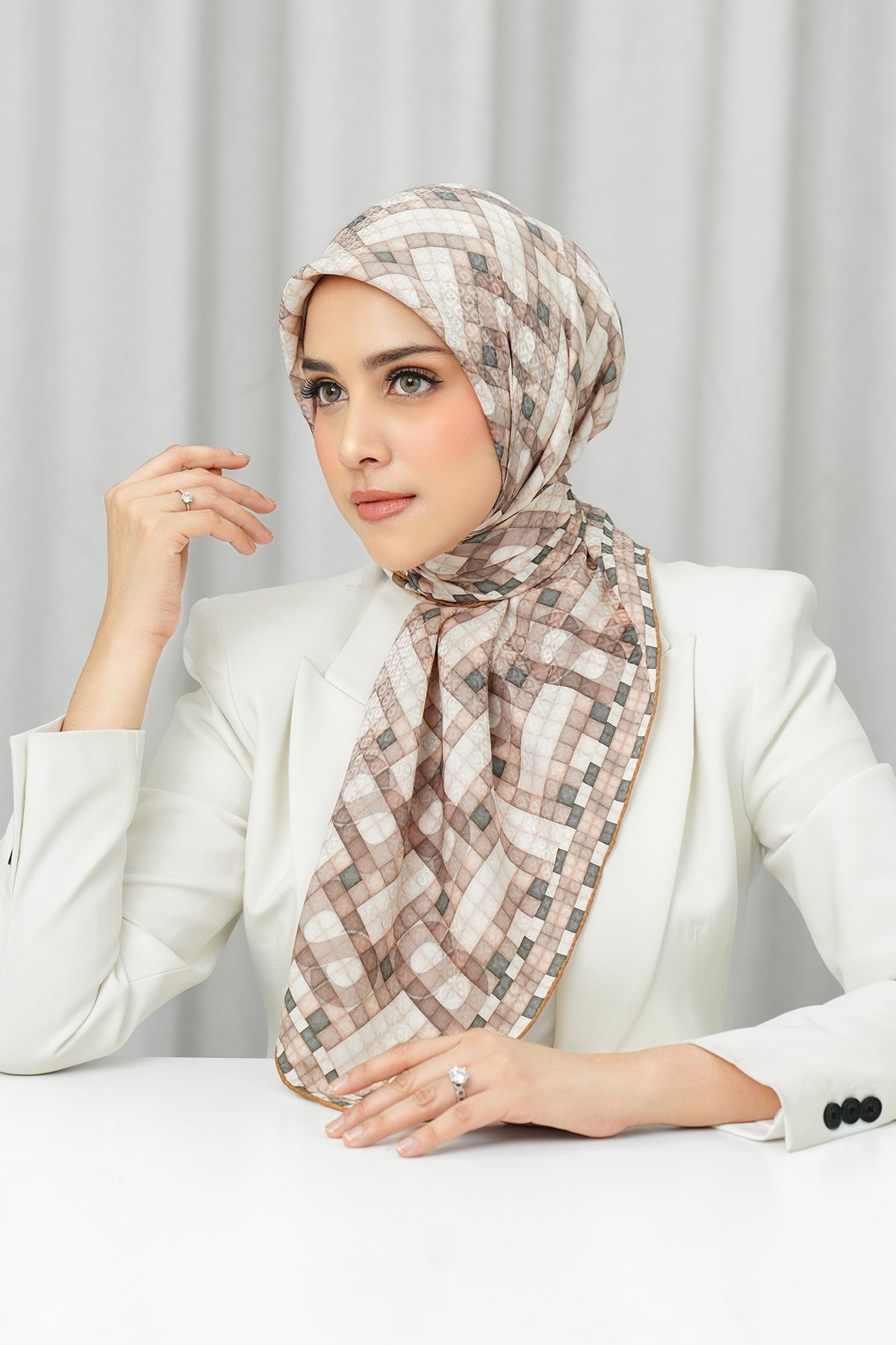 This exquisite scarf showcases a beautifully raised pattern intricately crafted in 100% silk for a luxurious texture. With its unique two-sided reversible design adorned with the Tapis Monogram in jacquard, it exudes refinement and sophistication.