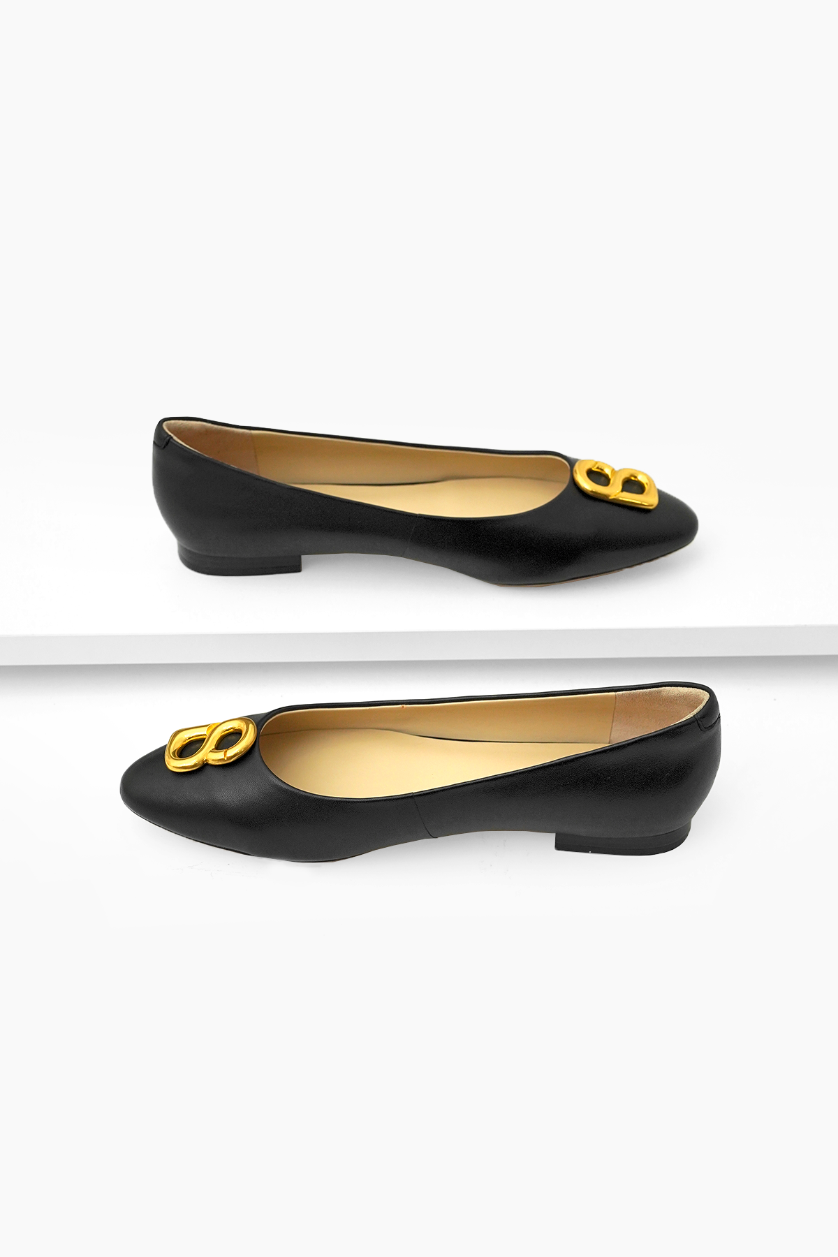 You’re on your way to discovering your new favorite flat shoes! This pair of comfortable flat shoes are made from soft genuine leather with pointy toe silhouettes adorned with the gold signature Buttonscarves hardware to add elegance.