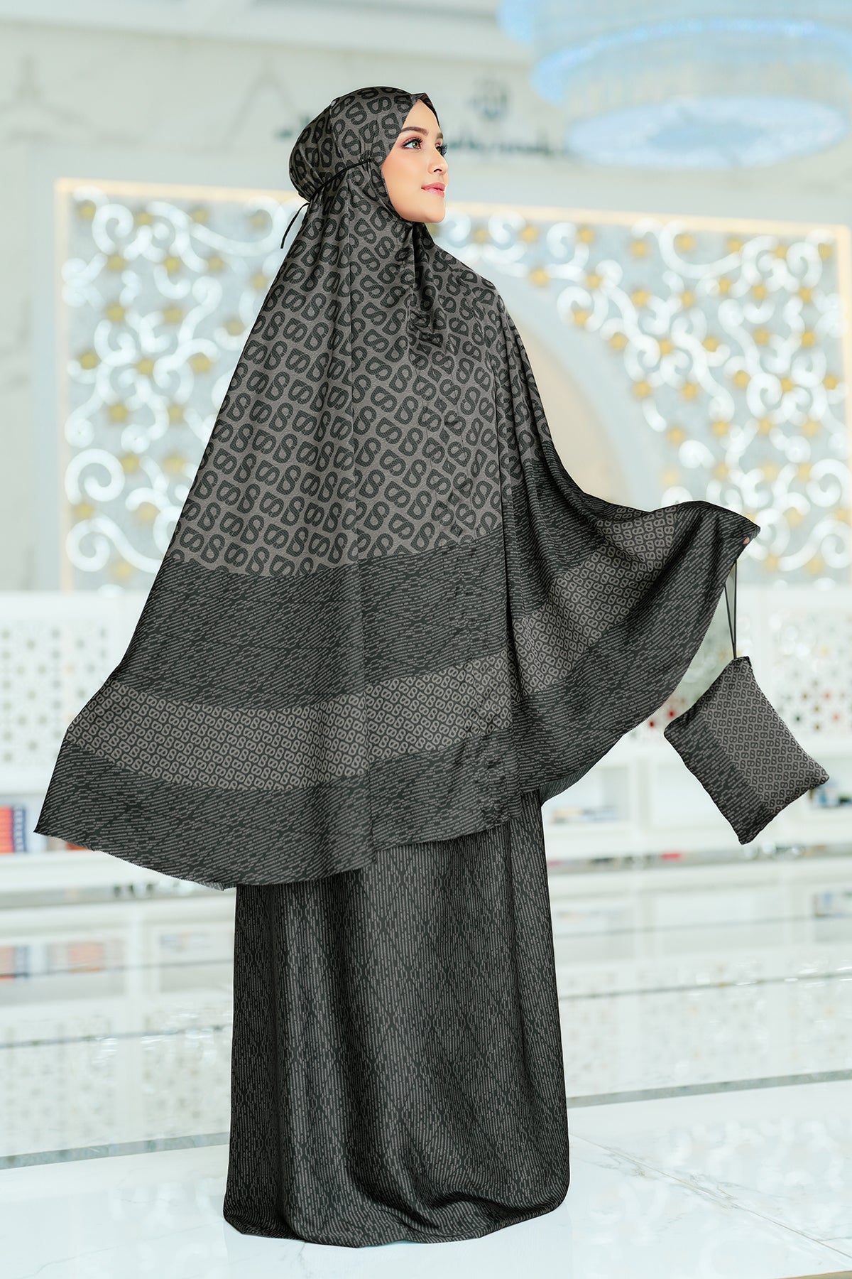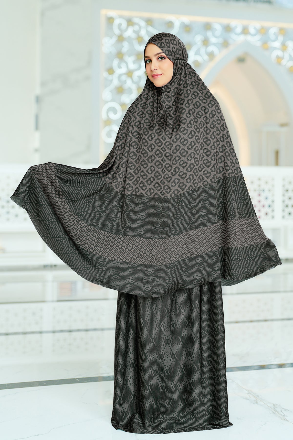This exquisite prayer robe features a mesmerizing blend of our signature monogram 'B' intricately intertwined with an abstract pattern, creating a unique and visually stunning design.