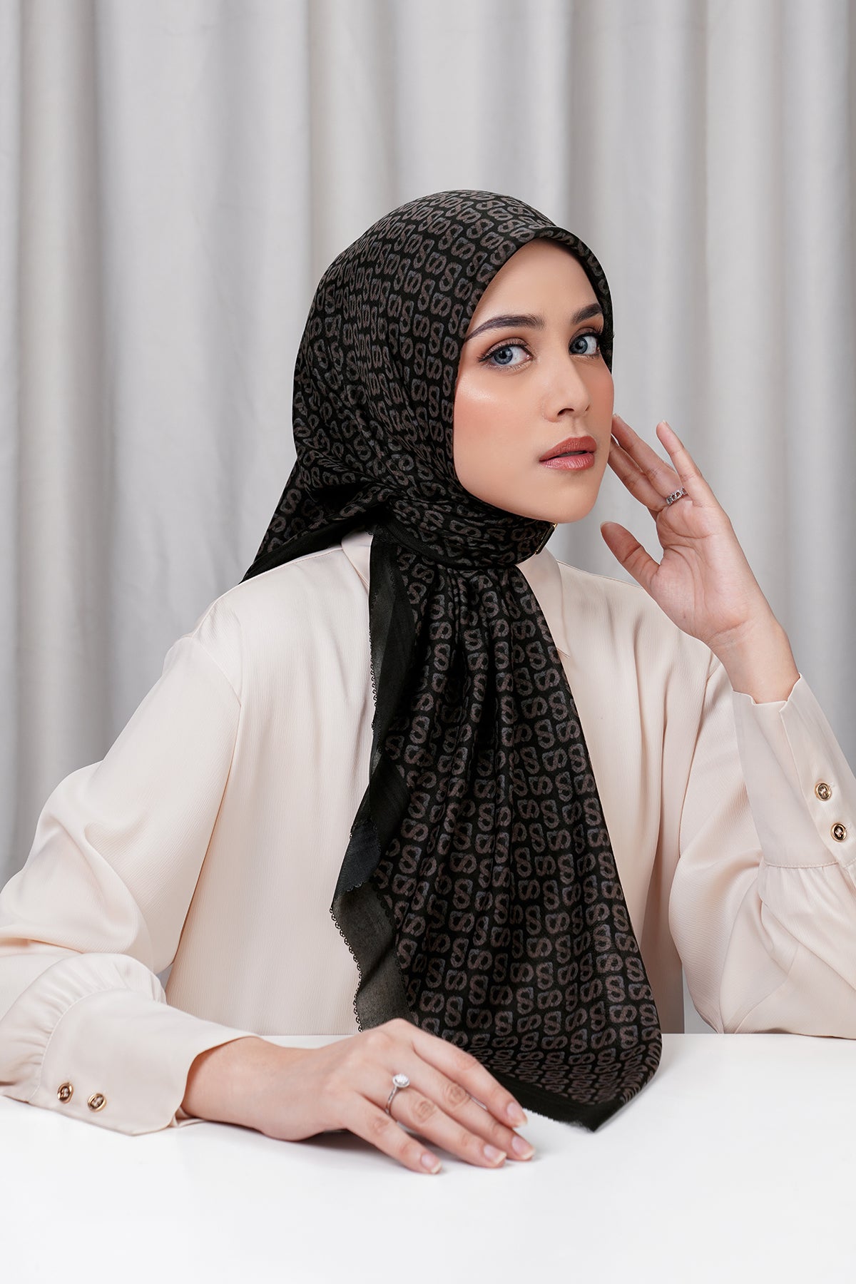 This scarf showcases a beautiful arrangement of small, colorful flowers coming together to form the Tapis monogram. Perfect for adding a touch of elegance to any outfit.